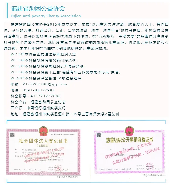 11月,福建省助困公益协会的“移植战斗包”共计发出5份!