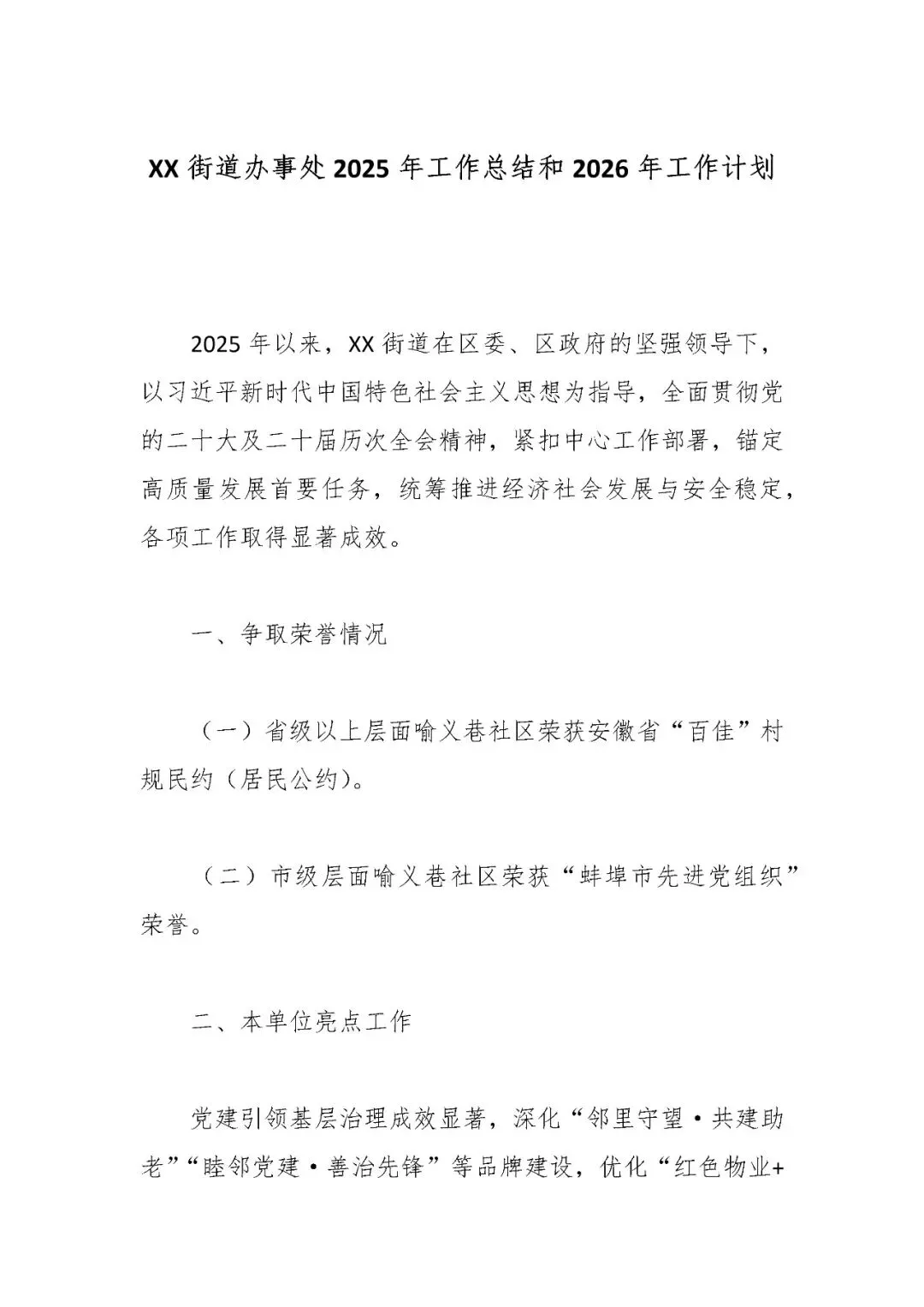 >XX街道办事处2025年工作总结和2026年工作计划