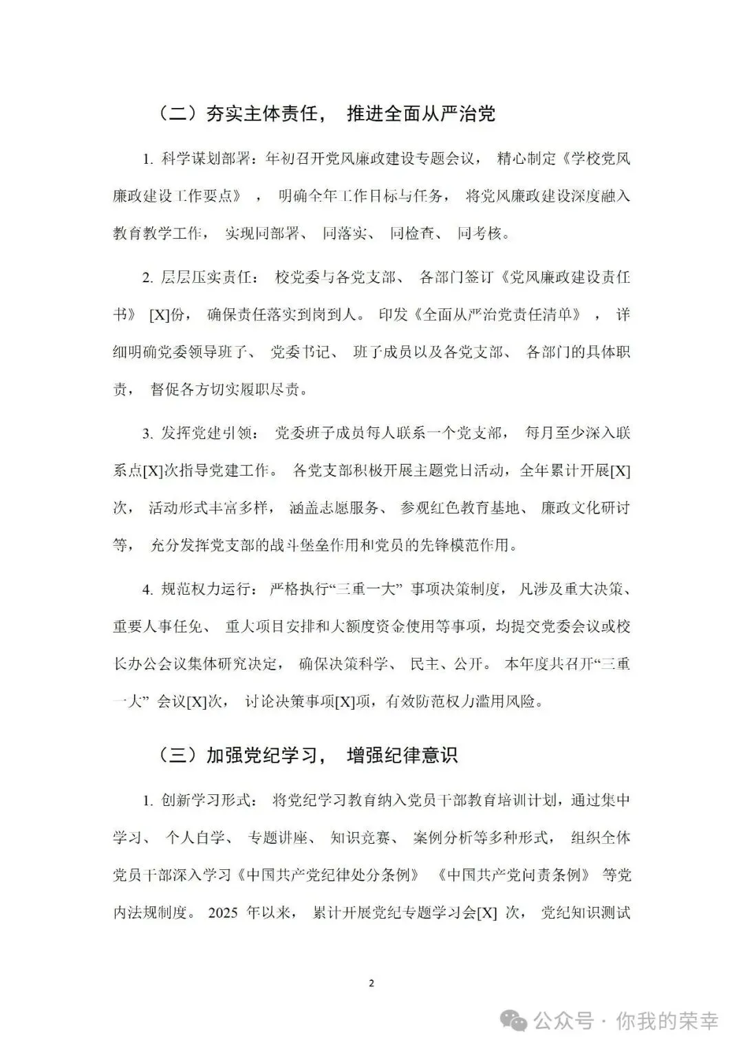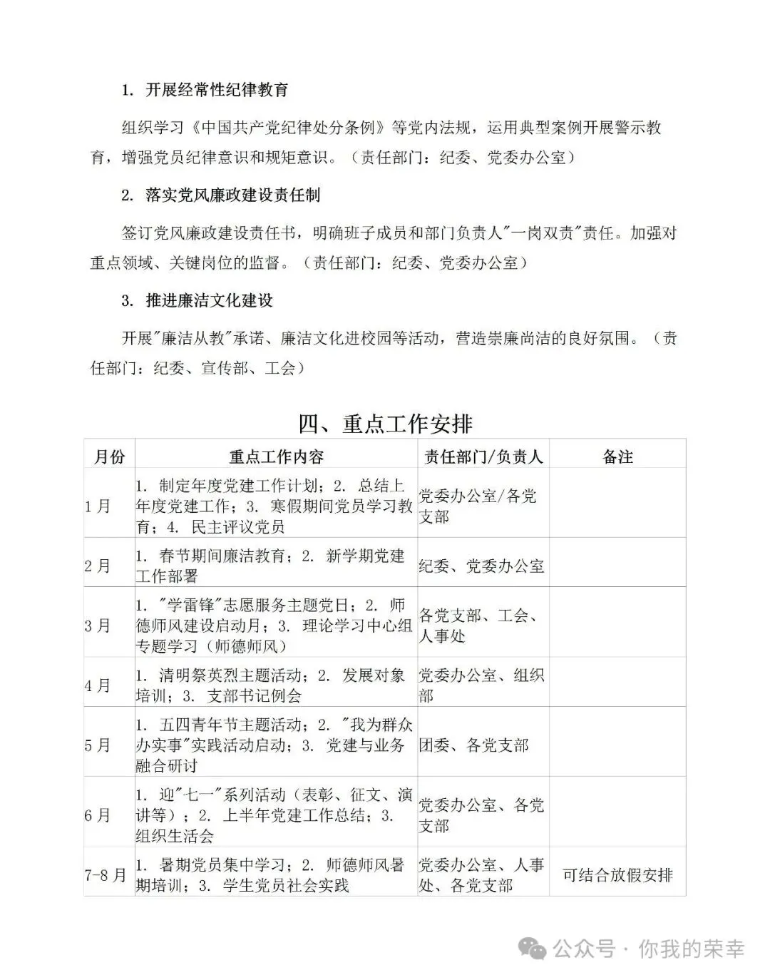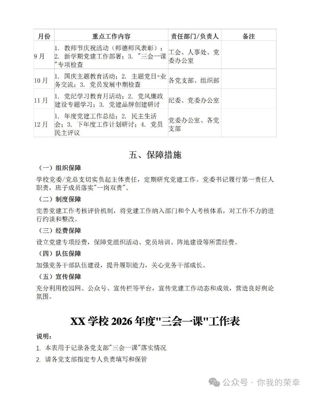 >2025年学校党风廉政建设工作总结报告(精选)+2026年度学校党建工作计划及三会一课工作表word版
