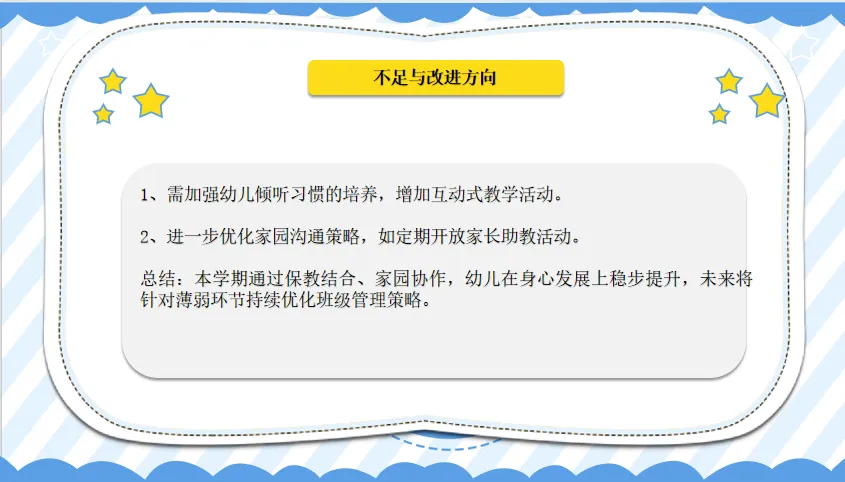 >幼儿园中班第一学期班务工作总结PPT