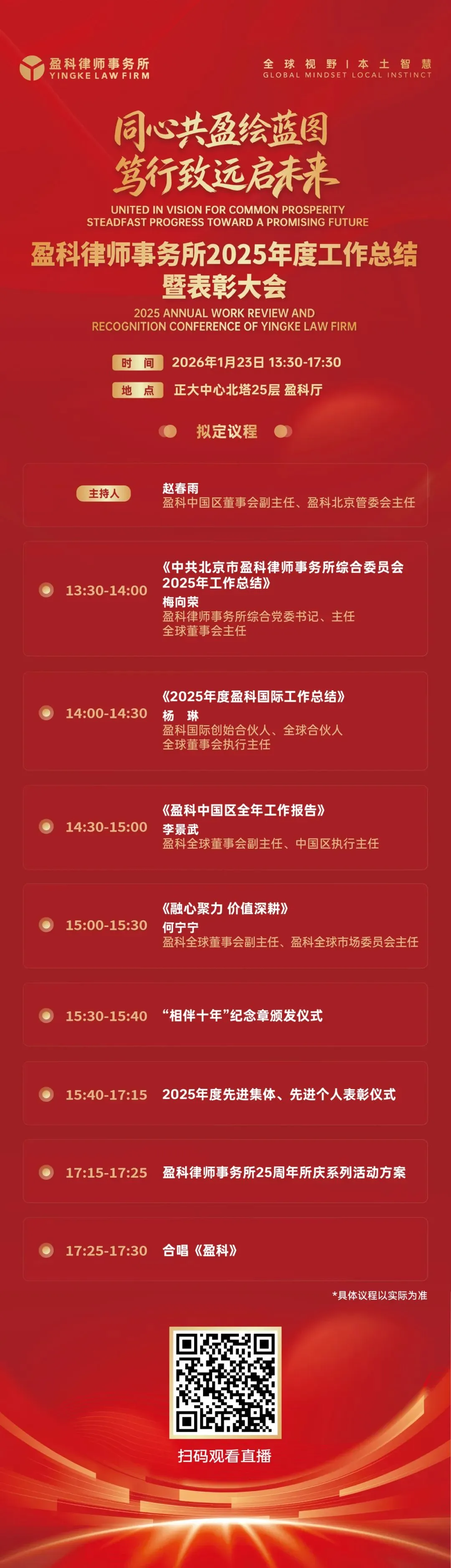 >活动预告 | 盈科律师事务所2025年度工作总结暨表彰大会