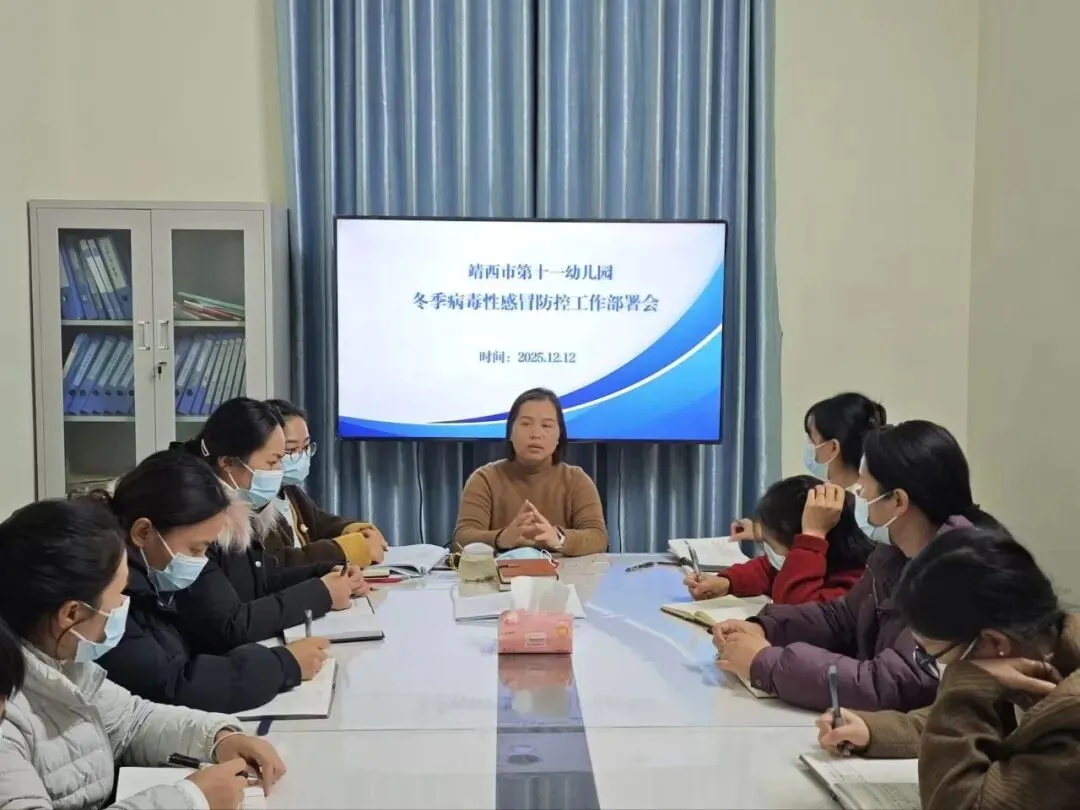 园长主持召开冬季病毒性感冒防控工作部署会,会议围绕冬季病毒性感冒的防控工作进行安排部署,教职工们认真记录会议内容,确保幼儿园防疫工作落实到位。