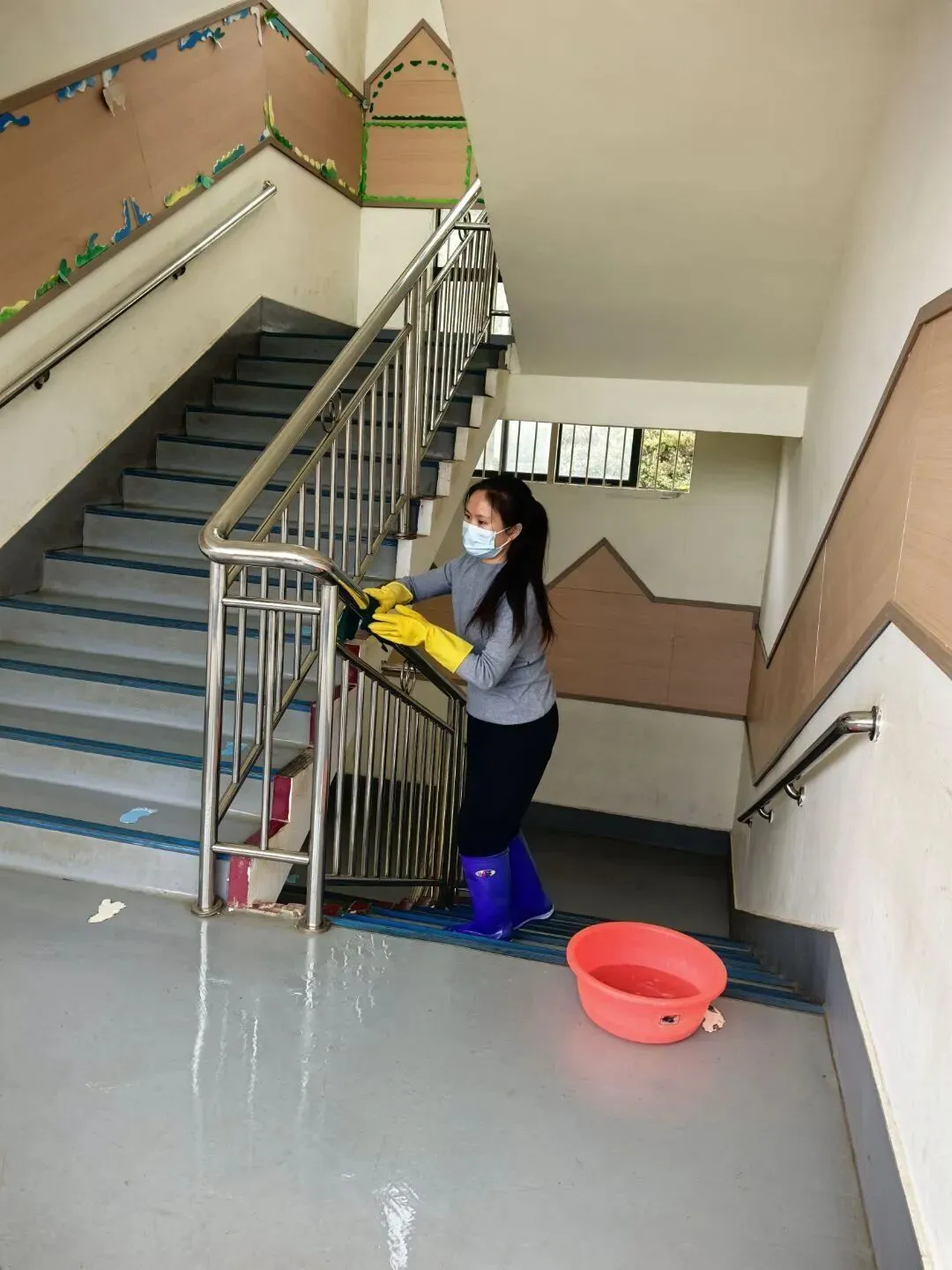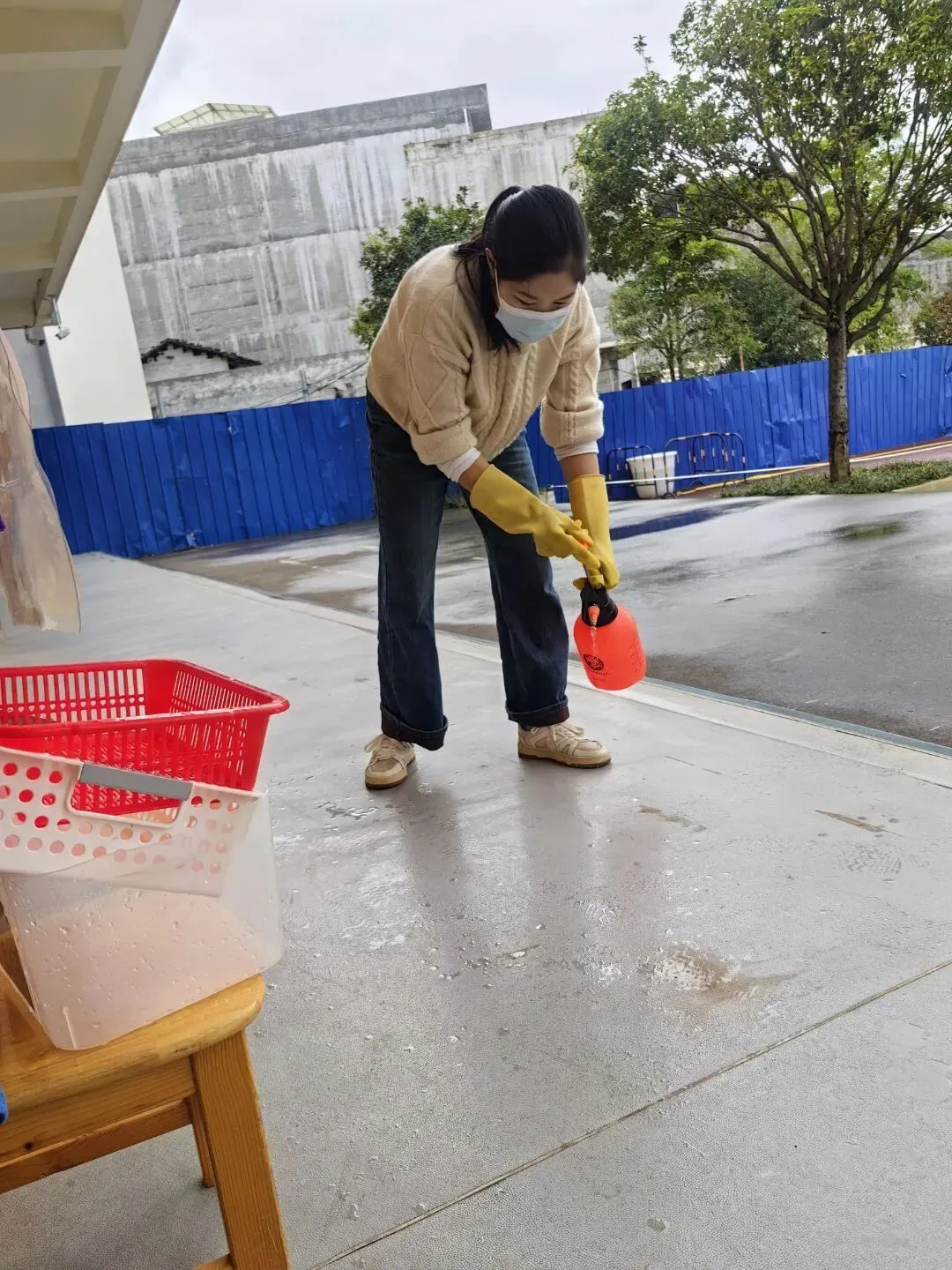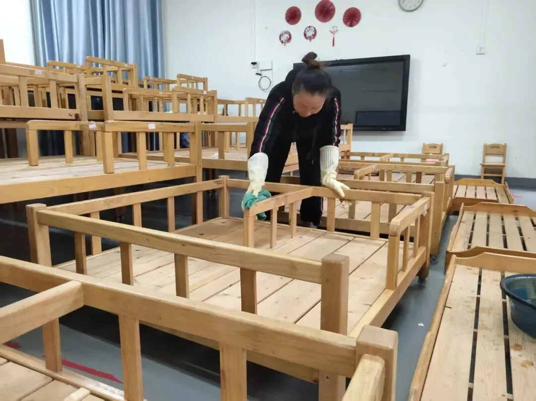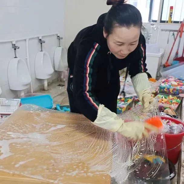 各班教师对园内桌椅、活动区域等场所开展全方位清洁消杀工作,从室外场地到室内桌椅,逐一进行擦拭、刷洗与消毒操作,细致处理每一处细节,通过彻底的清洁消杀举措,为校园环境安全筑牢卫生防线,切实保障师生的健康与安全。