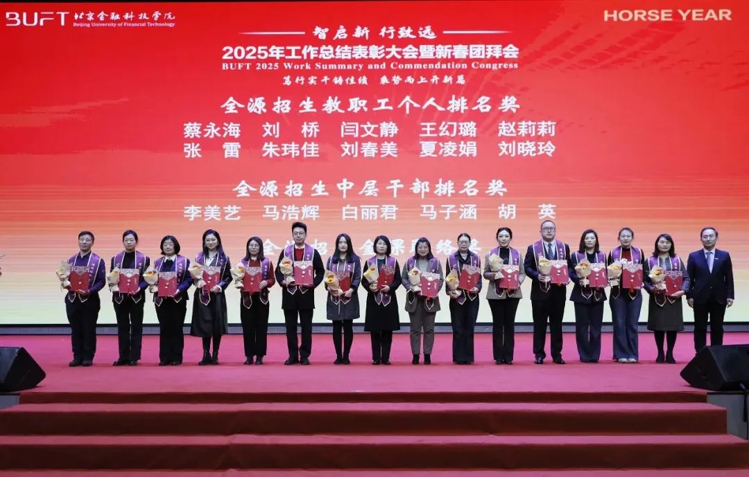 岁序更替,华章日新。1月18日,北京金融科技学院2025年工作总结表彰大会暨新春团拜会在学校体育馆举行。全体校领导与教职员工共同回顾总结了过去一年学校高质量发展取得的丰硕成果,表彰在各个岗位上作出突出贡献的先进集体与个人,并擘画新一年的发展蓝图。大会由副校长李娟主持。