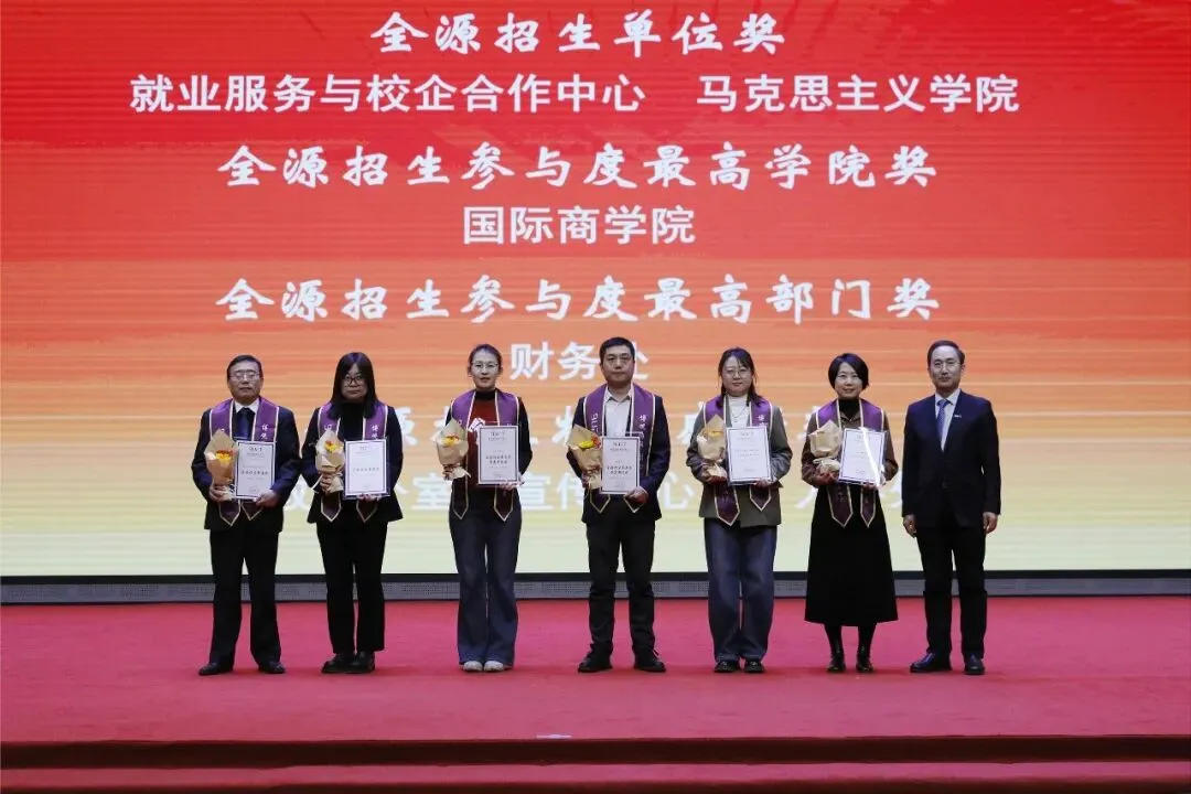面对2026年,他强调,学校将紧紧围绕“品质、特色、生态”的年度主题,以深化“无边界联合育人”模式和人工智能赋能教育创新为核心抓手,强化开放办学与特色品牌建设,全面推进各项事业高质量发展,奋力谱写建设特色鲜明的高水平应用型大学新篇章。大会对2025年度涌现出的各类先进进行了隆重表彰。副校长蒲嘉陵宣读《关于表彰2025年先进集体、优秀团队和先进个人的决定》,以及2024-2025学年全源招生工作先进单位和个人名单,并对获奖个人和单位表达了祝贺。