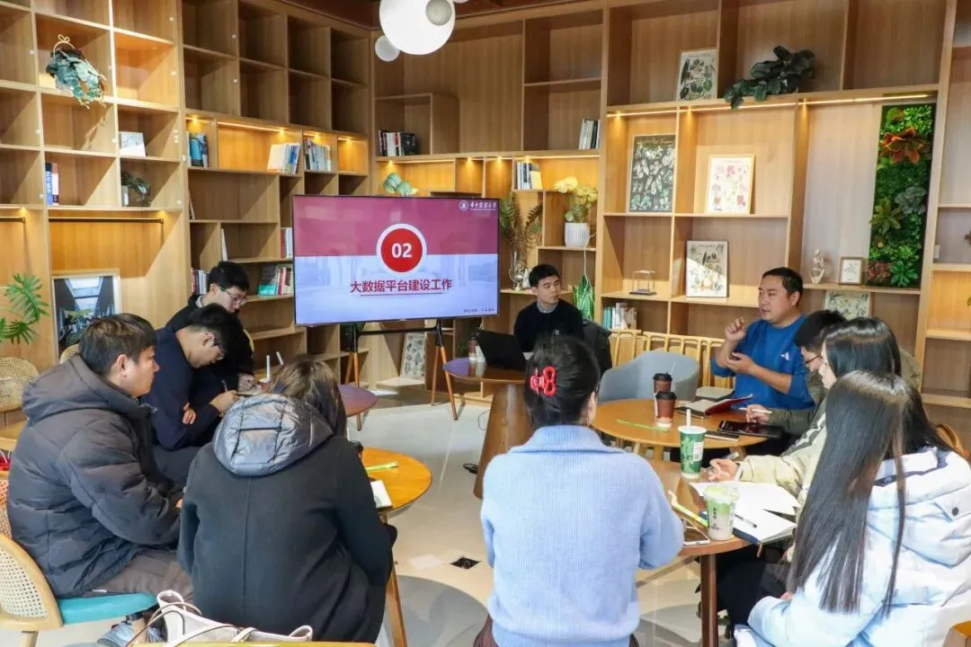 在汇报环节,辅导员叶双休介绍了AI辅导员建设的阶段性进展。目前,AI大模型与智慧大屏已成功部署,运行平稳,但在知识库覆盖广度与深度、应答精准度等方面仍有提升空间,下一步将持续优化模型能力。本科生院思政处王运涛老师阐述了大数据库平台的建设目标,即通过“学生数据一张表”与立体化学生画像,助力辅导员全面、高效把握学生成长动态,同时也坦诚说明了当前建设中遇到的实际困难。