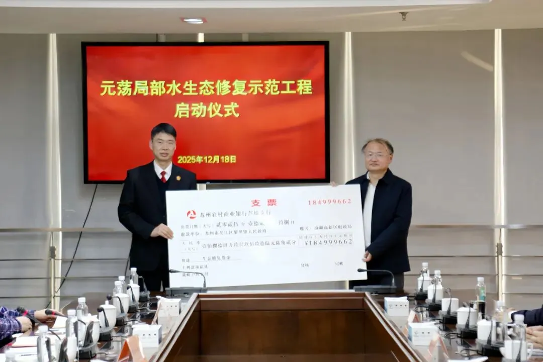 2025年12月18日,吴江法院向汾湖高新区管委会移交生态修复资金1849996.62元,正式启动元荡局部水生态修复示范工程项目。