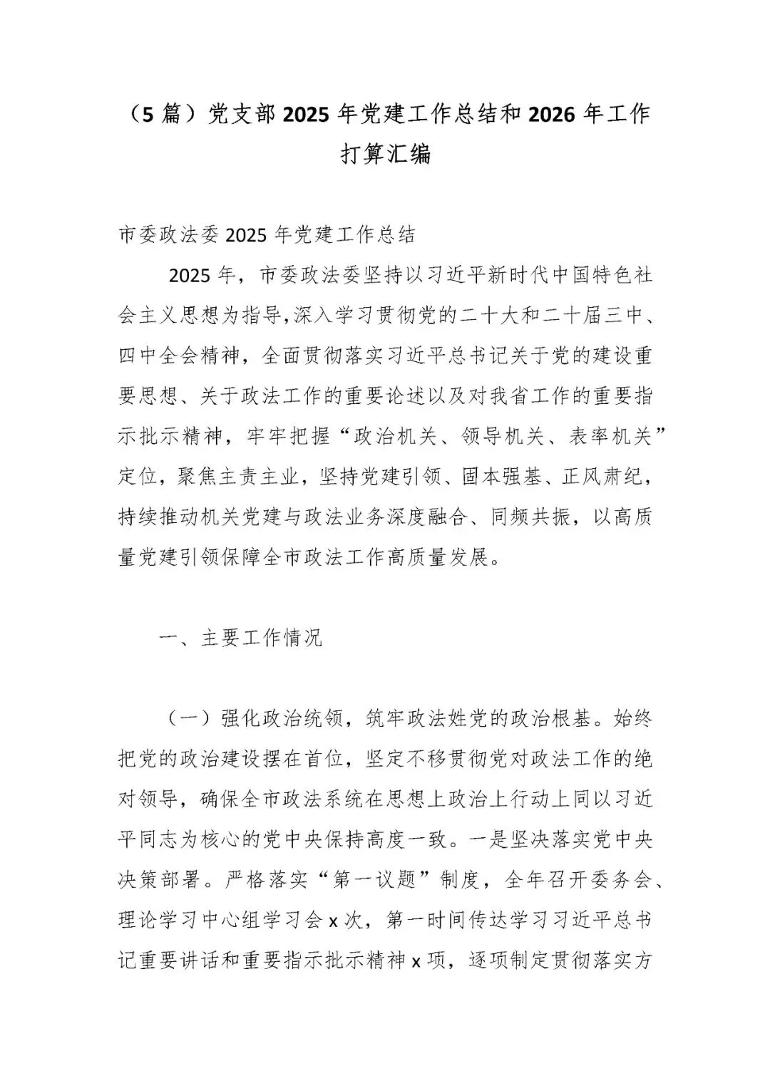 (5篇)党支部2025年党建工作总结和2026年工作打算汇编