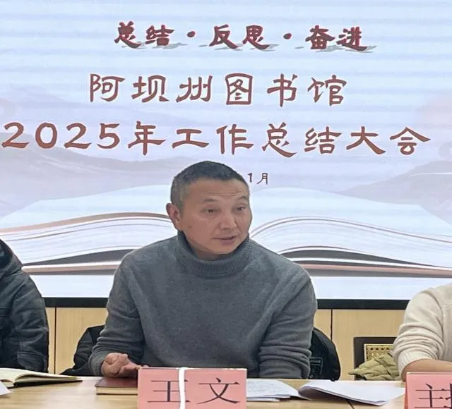 会议伊始,州图书馆馆长王文作年度工作报告。报告以“深耕文化沃土 赋能书香阿坝”为主题,系统总结了2025年全馆在党建引领、服务创新、资源建设、社会合作等方面取得的成果。