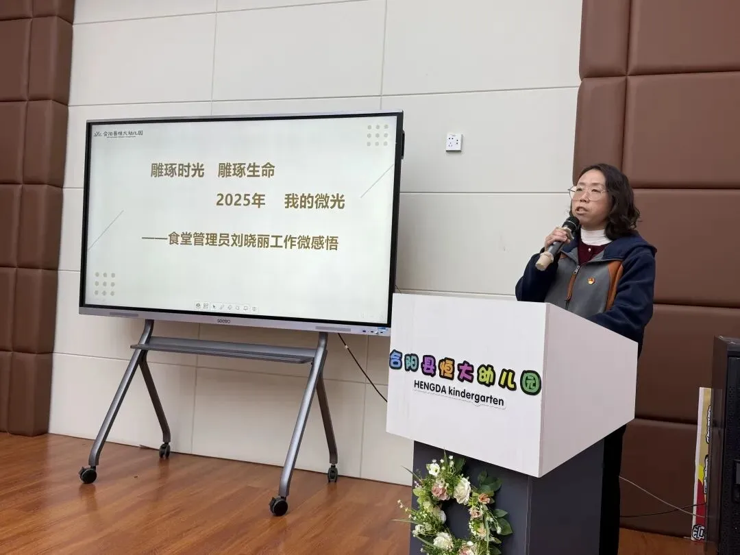 后勤团队的分享质朴而令人动容,她们以笔尖记录园所活动、用镜头捕捉成长瞬间,在文档的字里行间梳理着时光的轨迹;她细述晨检的专注、健康档案的完善,话语间满是对儿童的呵护;她细研食谱里的营养学问,让炊烟升起关怀的温度,在平淡中见真心;他走向人群之中,用亲切的话语讲述财务工作的重量与心得。正是这些默默无闻的守护,织就了园所最温暖的底色,让教育的美好落地生根。
