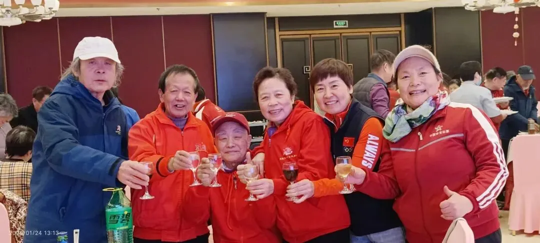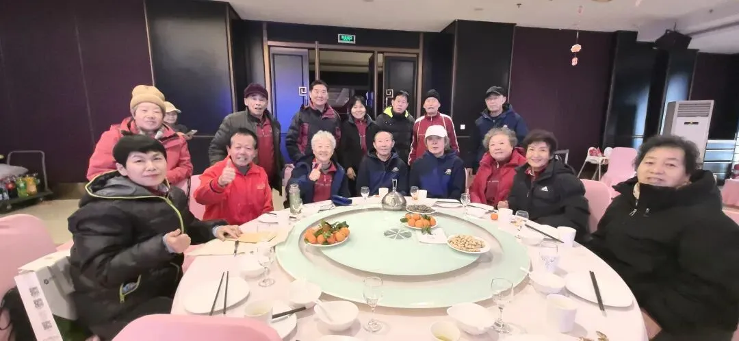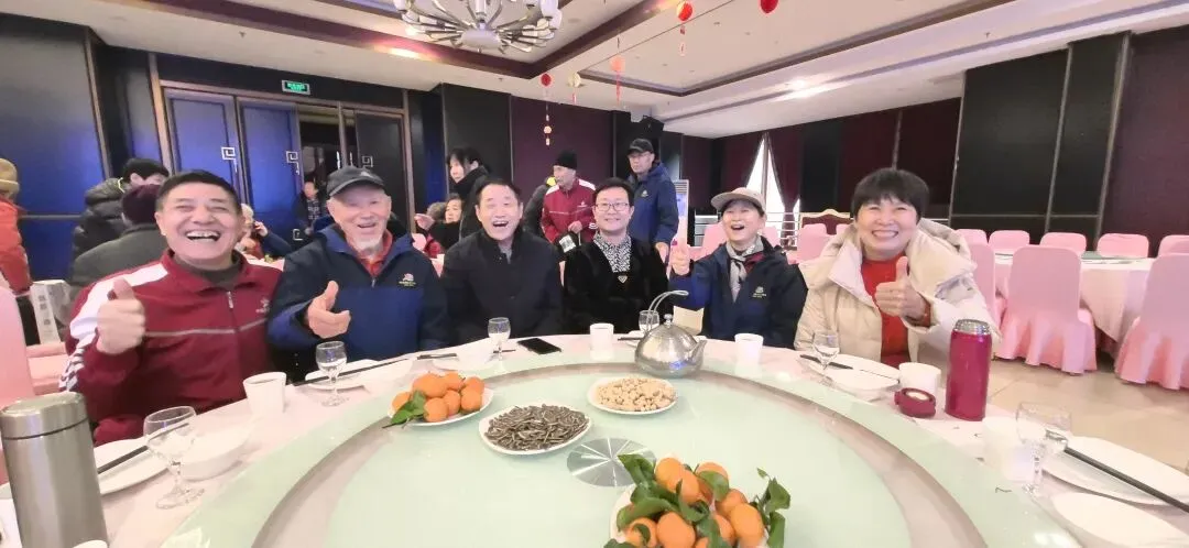 会后的聚餐在歌声与微笑、祝福与欢乐中进行,一曲深情的《难忘今宵》唱出了全体队员心中共同的愿望:青山在 ,人未老,共祝愿 ,祖国好。