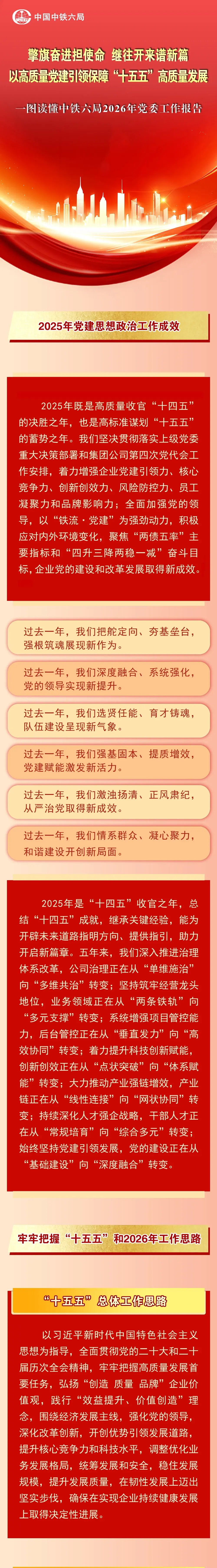 >一图读懂中铁六局2026年党委工作报告