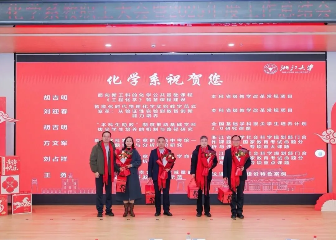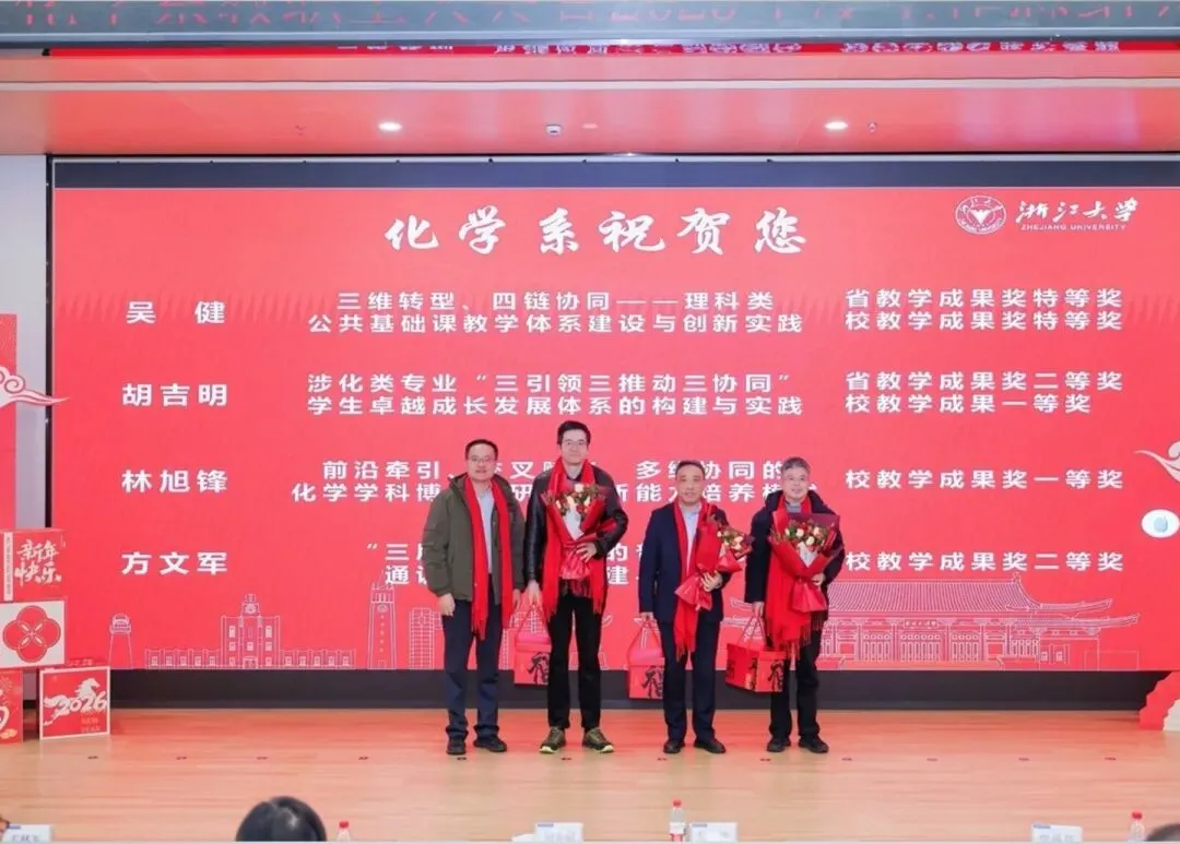 为感谢教职工在过去一年的突出贡献与不懈努力,大会举行了“化学系祝贺您”先进表彰仪式,对2025年度在教育教学、科学研究、人才培养、管理服务等各领域取得优异成绩的教职工,以及获得职称晋升、校级荣誉的教师予以表彰。此外,还举行了系设奖教金的颁奖仪式,以榜样力量凝聚奋进共识。