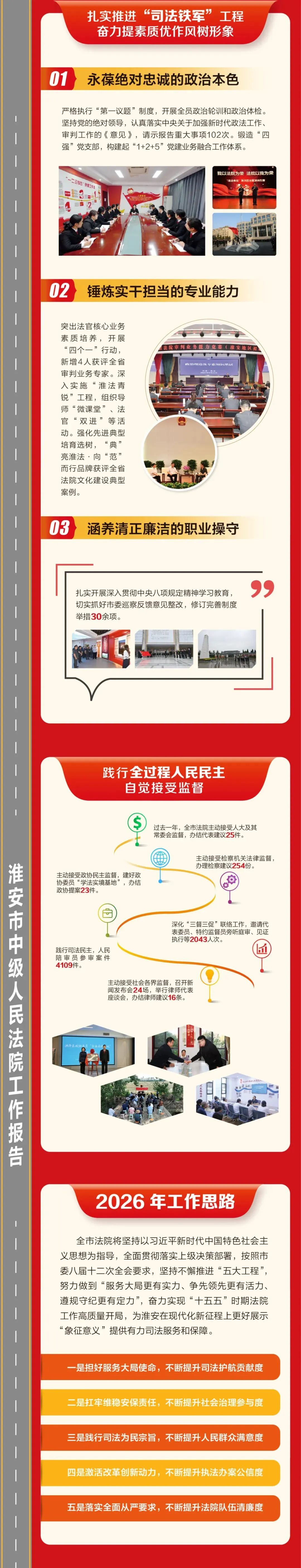 本专栏将集中呈现全市法院在两会期间所作的年度工作报告核心内容,以“一图解读”的形式,向您直观汇报过去一年的履职答卷,主动接受人民监督,汇聚前行力量。
