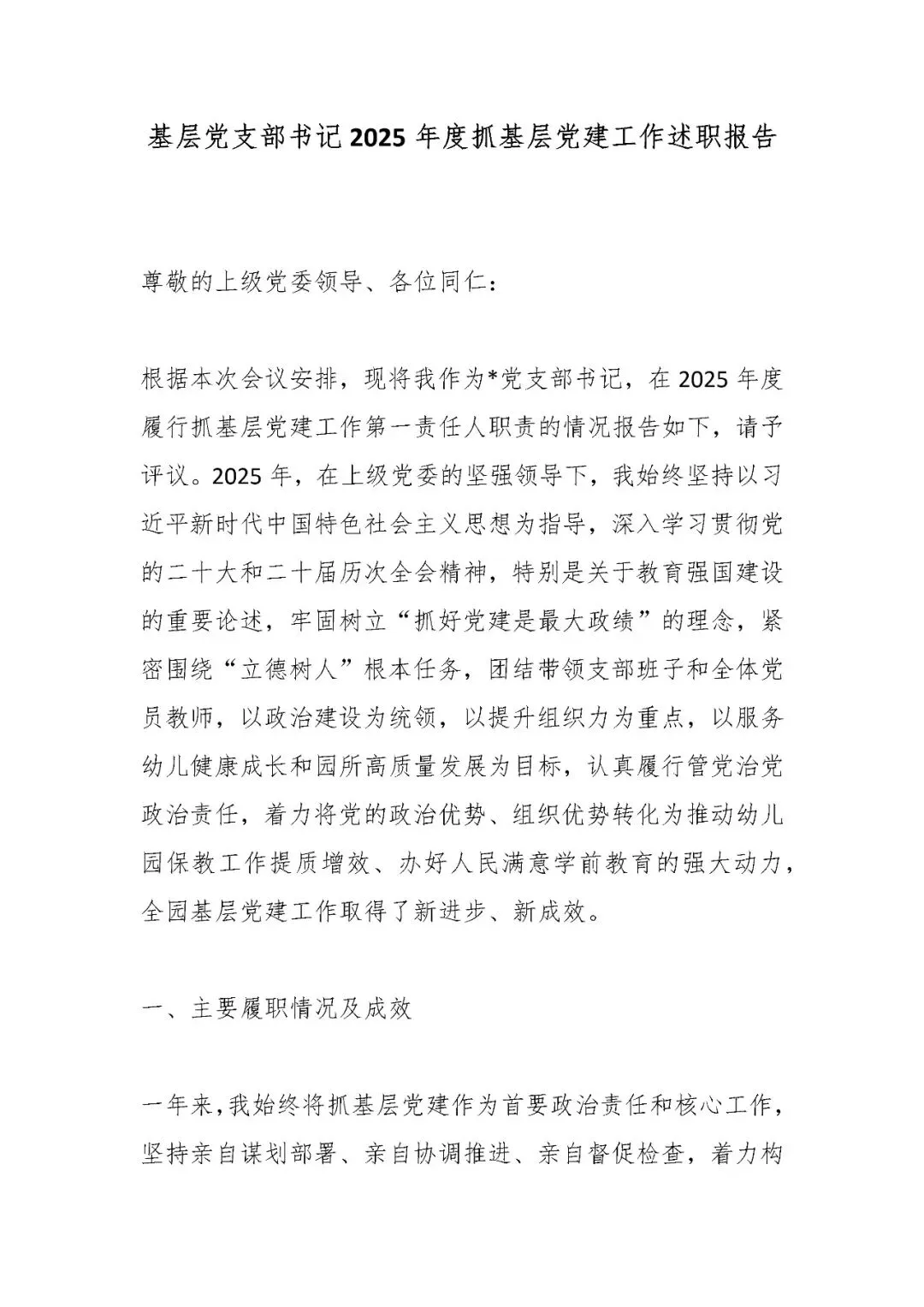 2025年度党组织书记抓基层党建工作述职报告范文!五维履职剖析短板整改堪称示范样板