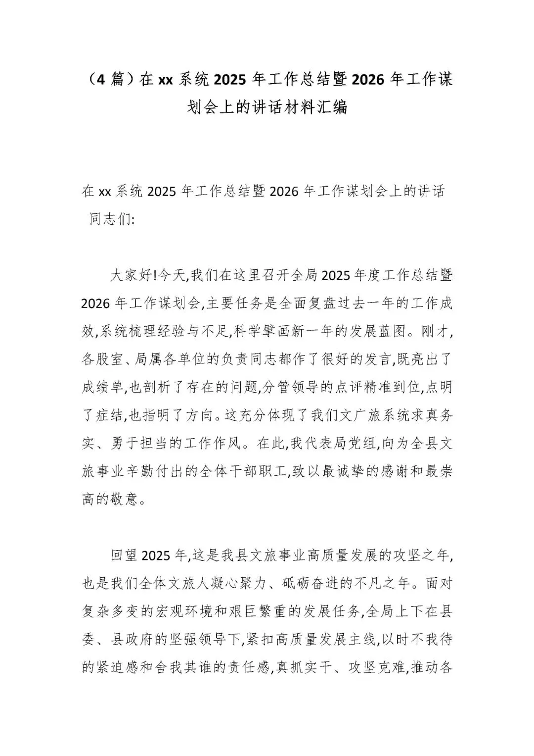 (4篇)在xx系统2025年工作总结暨2026年工作谋划会上的讲话材料汇编