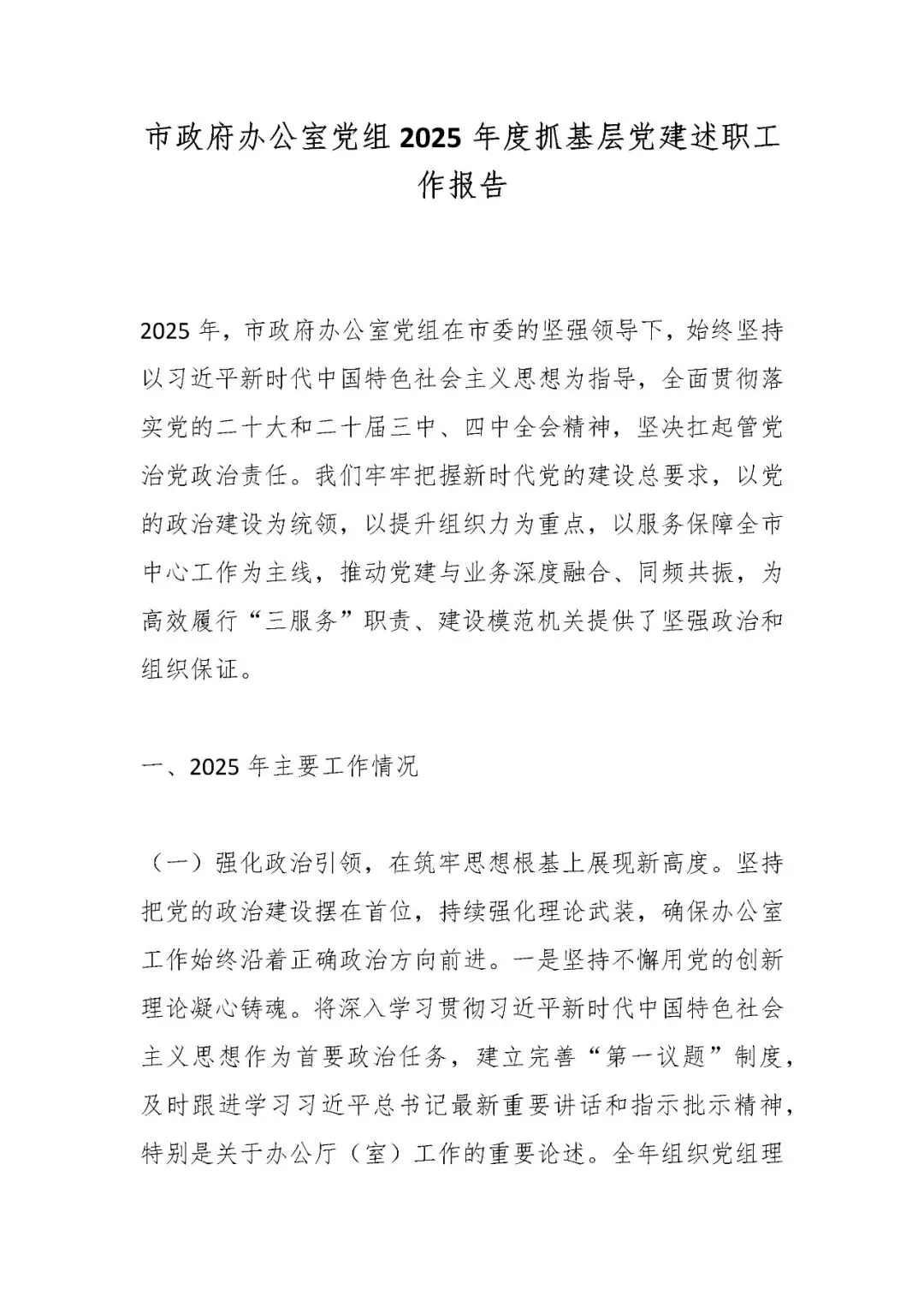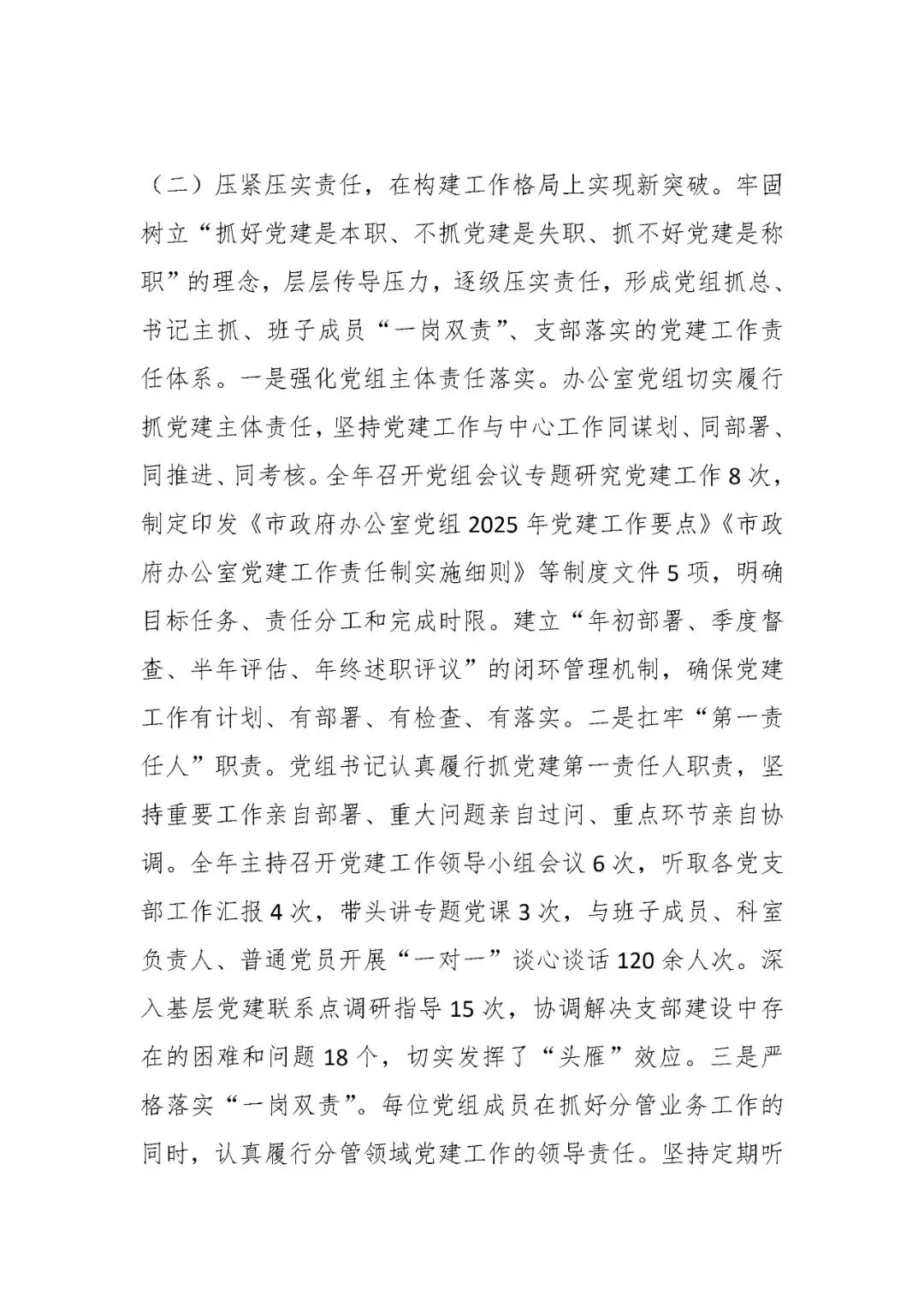 市政府办公室党组2025年度抓基层党建述职工作报告