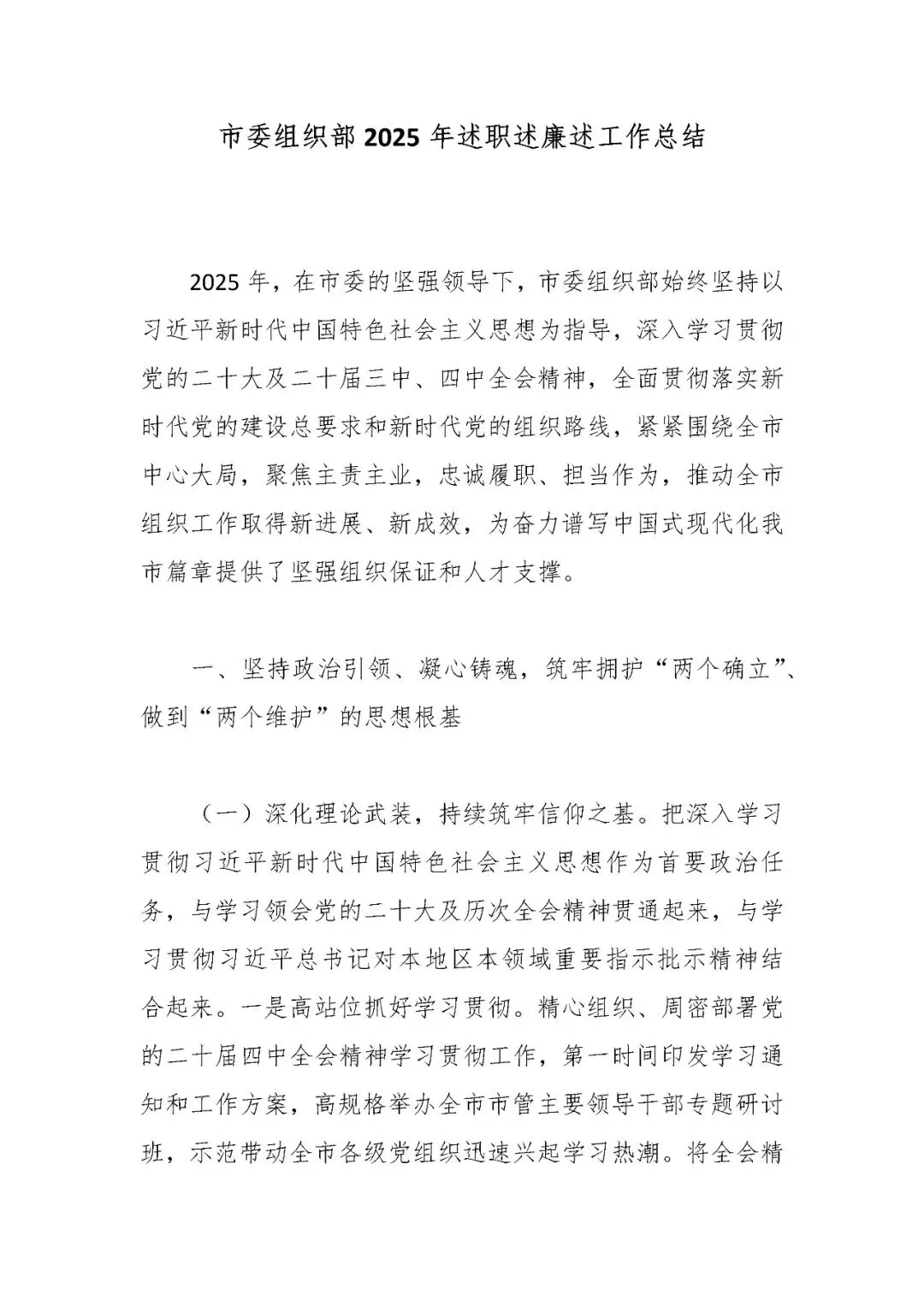>市委组织部2025年述职述廉述工作总结
