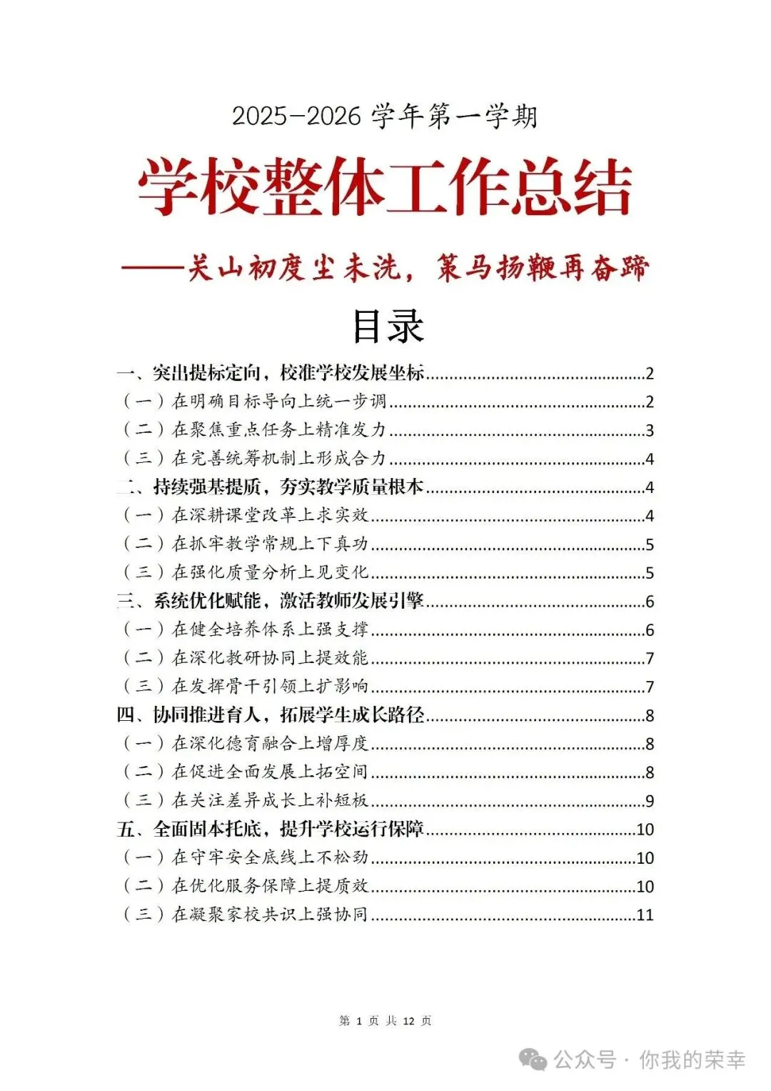 2025-2026学年第一学期学校整体工作总结——关山初度尘未洗,策马扬鞭再奋蹄(word版+ppt)