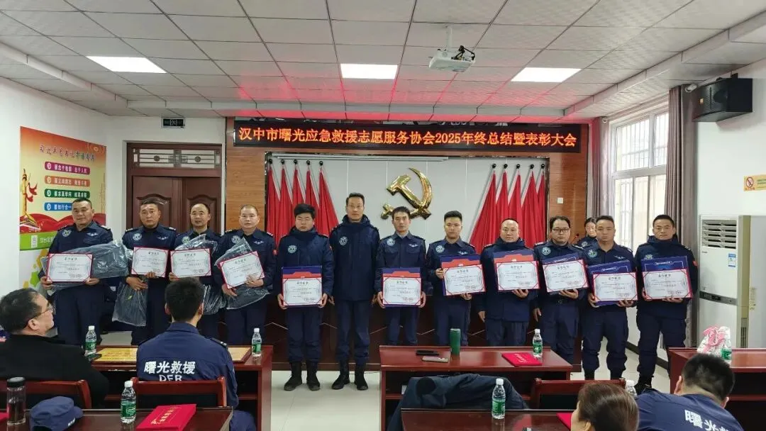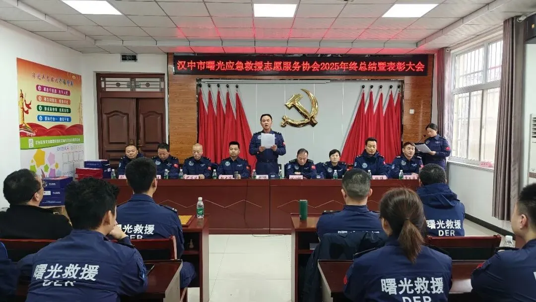2026年1月24日下午,汉中市曙光应急救援志愿服务协会2025年总结暨表彰大会顺利召开,全体队员代表齐聚一堂,总结工作、表彰先进、共启新程。