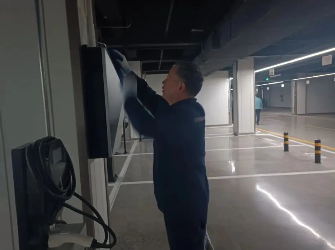 4.更换车库北出口照明灯灯罩。