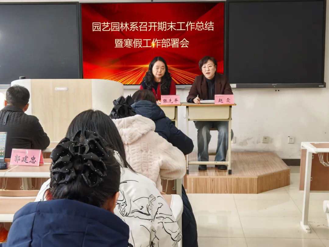 1月23日上午,园艺园林系召开期末工作总结暨2026年寒假工作会议,全面回顾本学期工作,系统部署假期重点任务。会议由系党委书记赵霞主持,全系教职工参会。