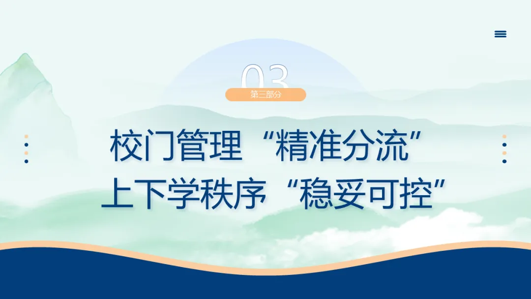 校门实行分年级错峰入校放学,优化动线设计,明确等候区与行进路线,根据天气灵活调整护导力量。严格执行门禁制度,学生中途离校需家长接送,访客登记核验后方可入校。通过家校协同规范接送车辆,杜绝占道掉头、车流中接娃等行为,保障校门口秩序。