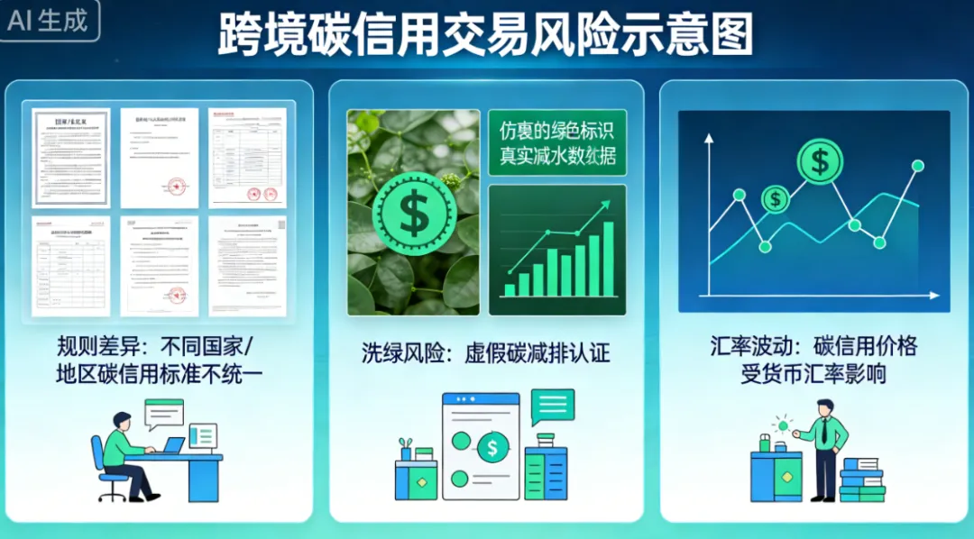 跨境碳交易合规风险:国际碳市场规则差异显著,不同地区对碳信用的认可标准、抵销比例限制不同,如欧盟ETS仅允许特定类型的碳信用用于抵销,且抵销比例不超过总排放量的5%,而国内跨境碳信用抵销的具体规则(如可使用的碳信用类型、最高抵销比例、项目地域限制等)尚未明确,易导致企业交易后无法完成备案抵销。同时,碳信用的真实性与溯源难度较大,部分境外项目存在核证标准宽松、额外性不足等问题,可能引发“洗绿”争议。此外,跨境交易还面临外汇汇率波动、跨境资金流动监管、国际税收政策差异等风险,进一步增加交易复杂度。