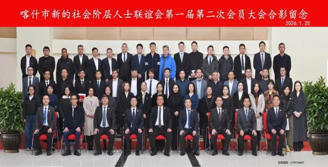 2026年1月25日,喀什市新的社会阶层人士联谊会2025年度工作总结暨表彰大会在喀什市科技文化广场二楼喀什会堂隆重举行。市委统战部相关领导、喀什市商协会代表应邀出席,喀什市新联会领导班子成员、全体会员代表共计77人齐聚一堂,回顾奋斗历程,擘画发展蓝图。