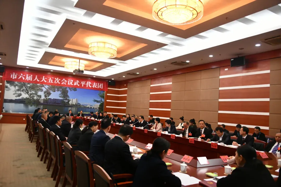 1月22日上午,出席市六届人大五次会议的武平代表团在龙岩人民会堂审议市政府工作报告、“十五五”规划纲要草案、计划报告和草案、预算报告和草案。市领导杨溢、李达武、修洪、卓先发等,县领导张丽华、李小飞、刘演昌等参加审议。