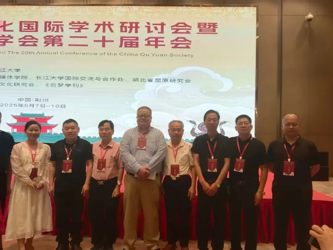 2025年二季度,学会聚焦学术研究核心主业,在国内外高端学术平台崭露头角,品牌影响力持续提升。5月7日至10日,第六届楚文化国际学术研讨会暨中国屈原学会第二十届年会在荆州长江大学召开,来自中、日、韩及港澳台等国家和地区的220名专家学者齐聚一堂。澧州屈原学会作为特别受邀单位,派出8名代表参会,提交的6篇学术论文引发广泛关注与热烈讨论。其中,总顾问曹传松的《〈楚辞〉所载“洞庭”考释~兼议长江“沱澧”故道》从考古视角解读楚辞地理意象,顾问杨传向的《道统的诗学永生:论屈原〈楚辞〉对〈鬻子〉思想的传承与精神突围》深挖思想关联,监事长单家庆等撰写的论文追溯屈原澧水行迹,均展现了学会扎实的学术功底与独特的地域研究视角。