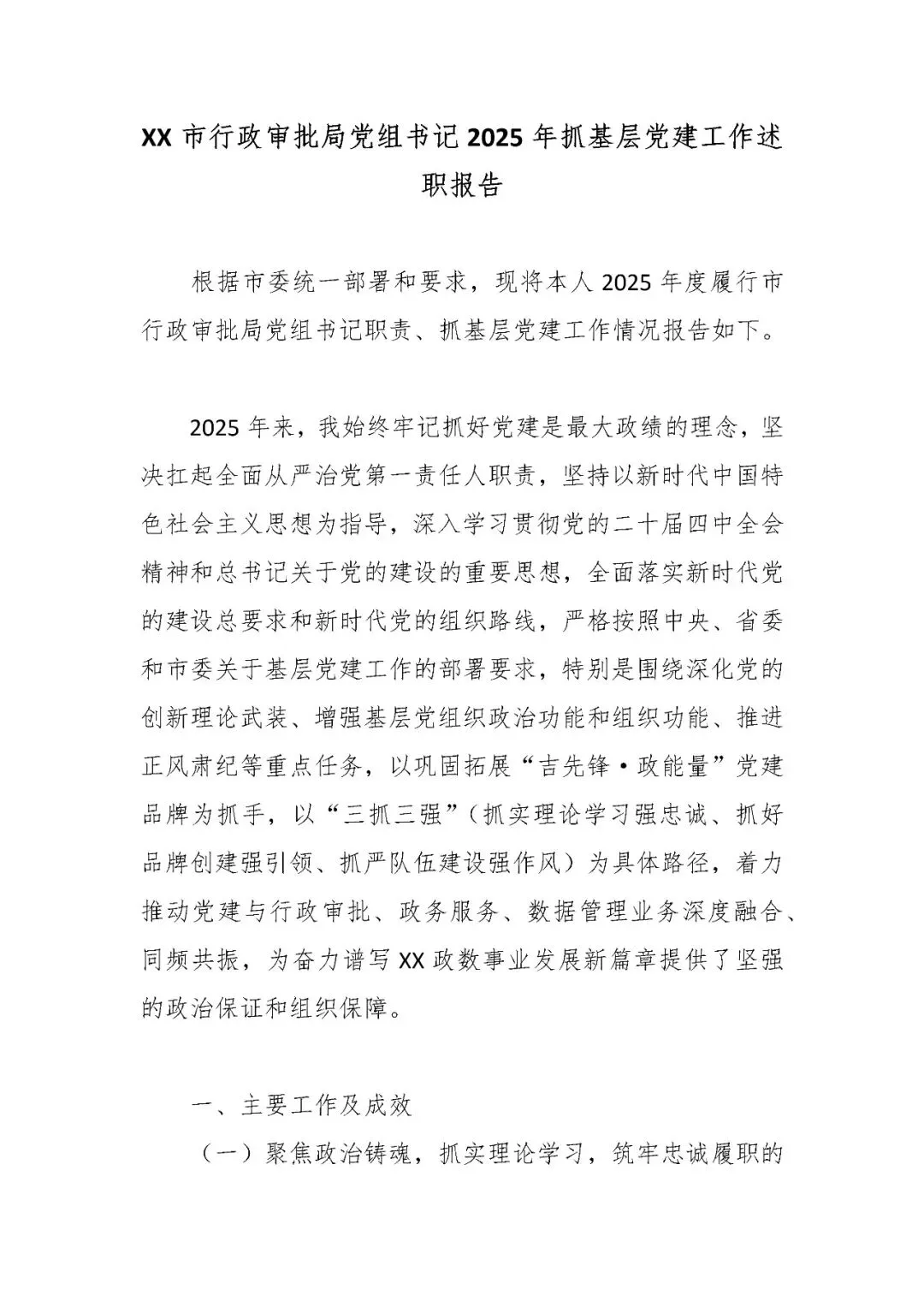 >行政审批局党组书记2025年抓基层党建工作述职报告