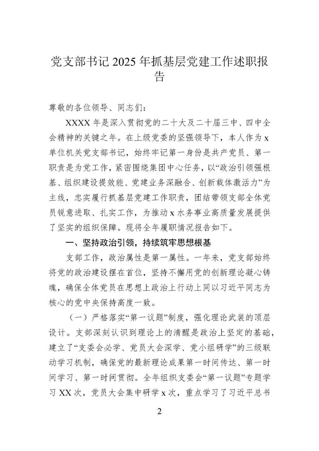 【7篇】党支部书记2025年抓基层党建工作述职报告汇编