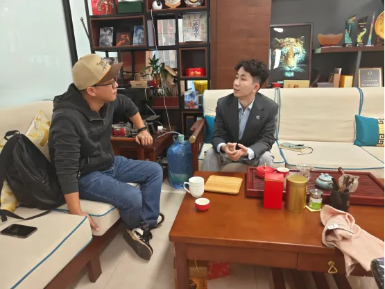 接待副会长单位广州泓铭瑞装饰材料有限公司、广东中大建设集团有限公司,介绍园区整体规划、商会建筑专委会发展情况及近期工作重点,了解企业经营范围及技术优势,希望整合区内资源,拉动经济内循环。