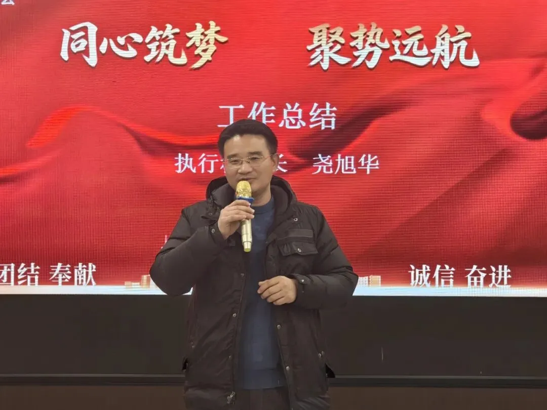 执行秘书长尧旭华首先系统回顾了本次换届庆典会务工作的全过 程。他指出,活动整体达成预期目标,充分体现了会务团队的大局意识与协作精神。各小组履职到位,物资保障、仪式执行、现场控场等方面表现突出,展现出良好的应变能力。同时,他也客观指出工作中可优化之处,如签到疏导、礼品发放衔接、音视频协同等环节仍可加强,未来需进一步强化流程培训、完善人员备份、细化风险预案。最后,他向全体工作人员致以衷心感谢,并相信商会的后续活动将办得更加专业出色。