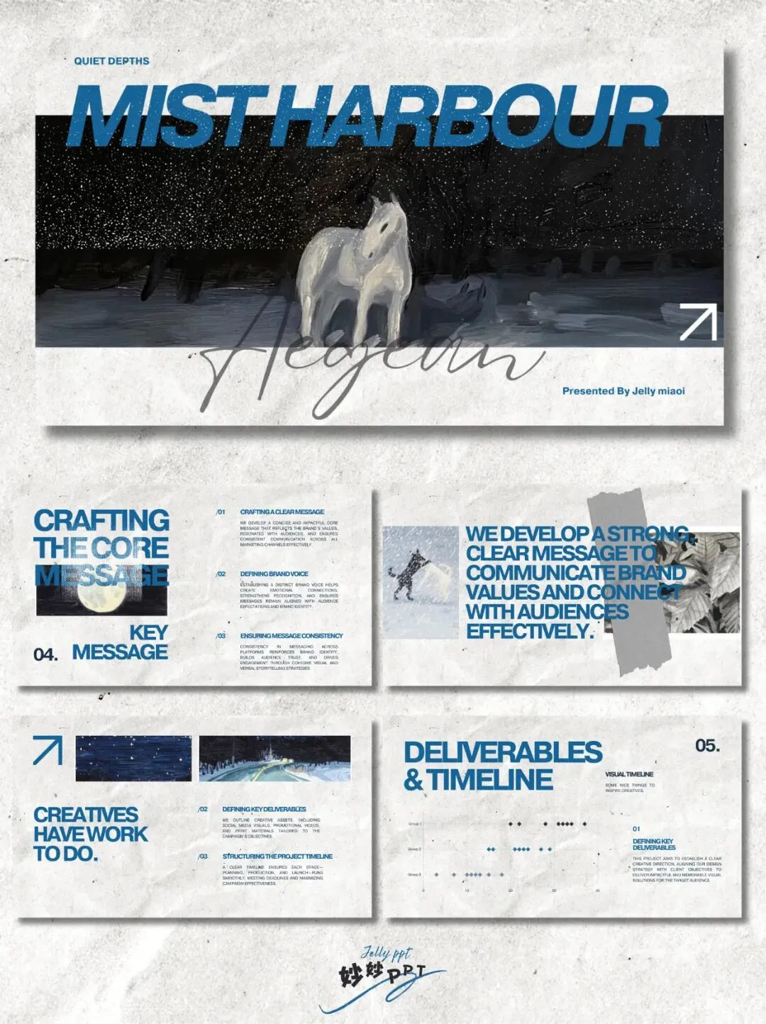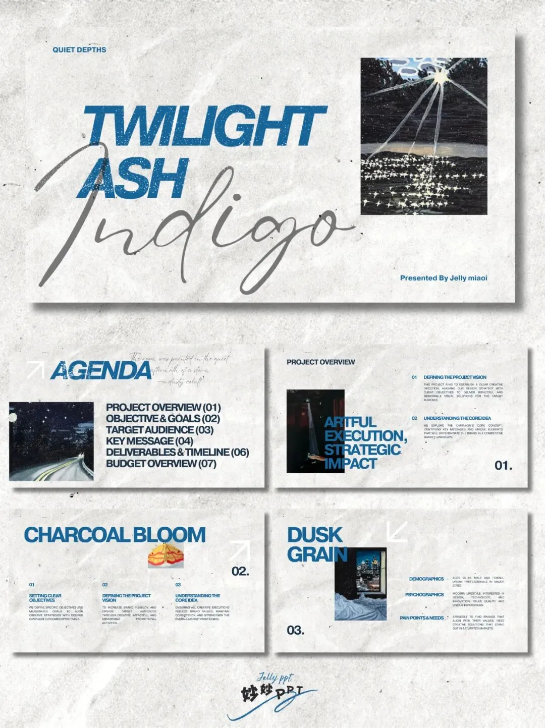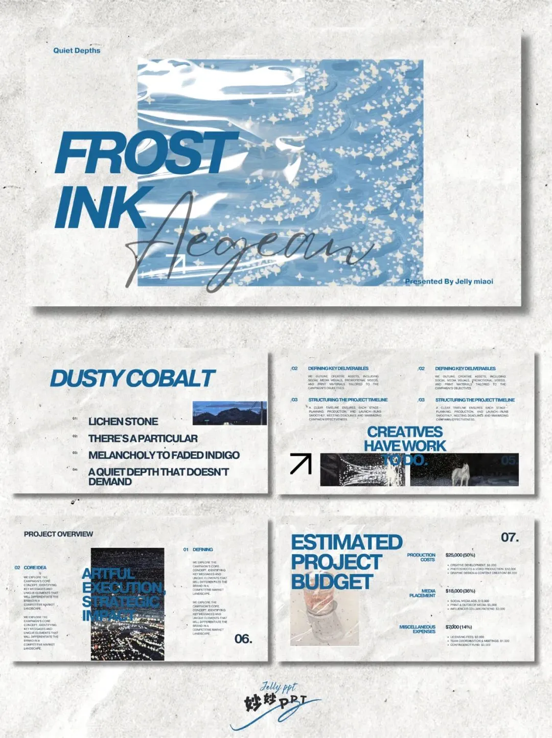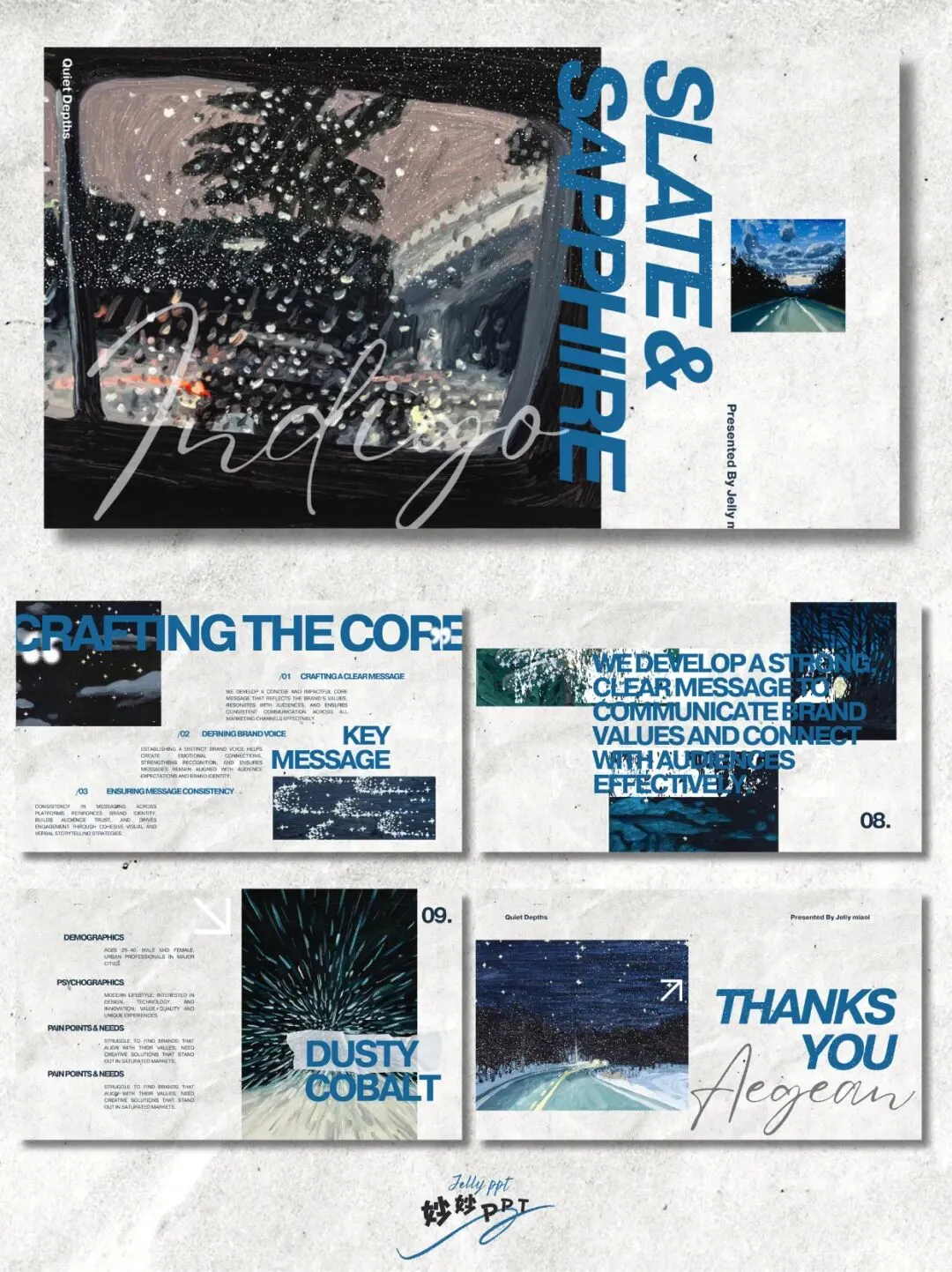 287|宝蓝灰调 高级感ppt|工作总结PPT|简约ppt|复古小众ppt