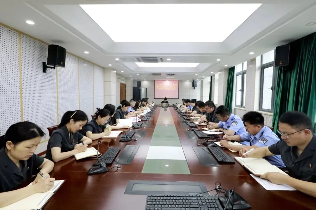 ▲全体干警集中观看先进事迹报告会