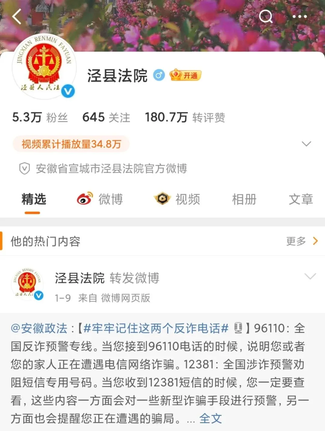 泾县法院新浪微博