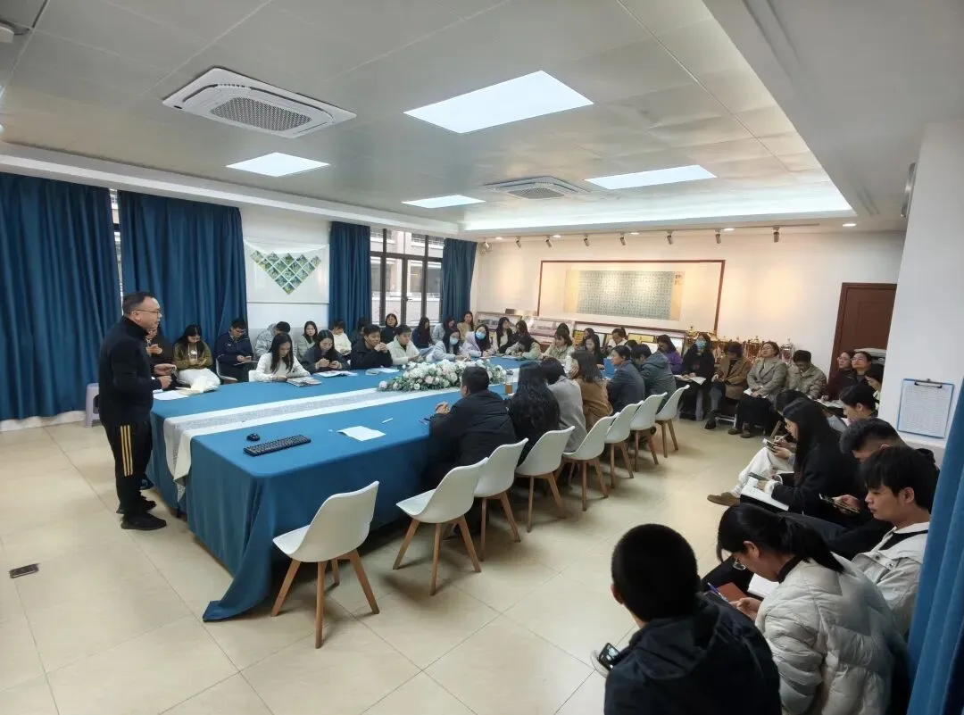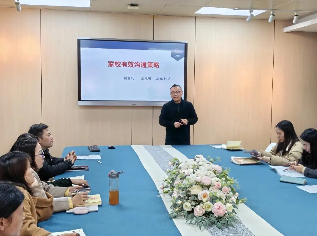 会议伊始,德育主任危光明以《家校有效沟通的策略》为主题展开分享。他结合多年工作经验,从沟通时机选择、语言表达技巧、家校需求对接等方面,拆解了多个可直接复用的沟通方法,并通过具体的家校沟通成功案例,生动展现了高效沟通在化解家校矛盾、凝聚教育合力中的重要作用,为在场教师提供了极具实操性的家校沟通新思路。