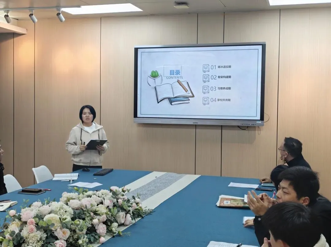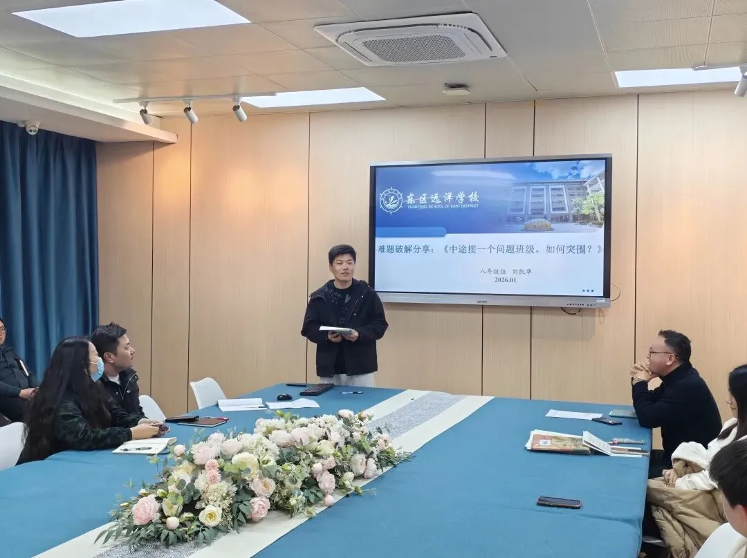 在班级建设分享环节,七年级余聪香老师以《如何一学期打造一个优秀班级?》为题,结合七年级新生班级管理实践,梳理了从班级文化构建、班规制定到学风培养的全流程经验。她提出,新生班级管理需注重“抓早抓小”,通过趣味化的班级活动增强集体凝聚力,以精细化的常规管理培养学生行为习惯,为新生班级的快速成型与良性发展提供了清晰路径。让班级在有序规范中焕发蓬勃活力。