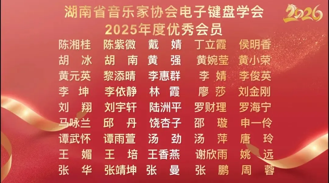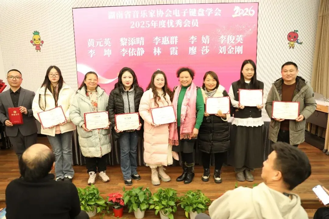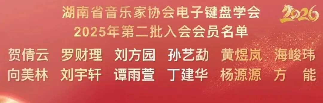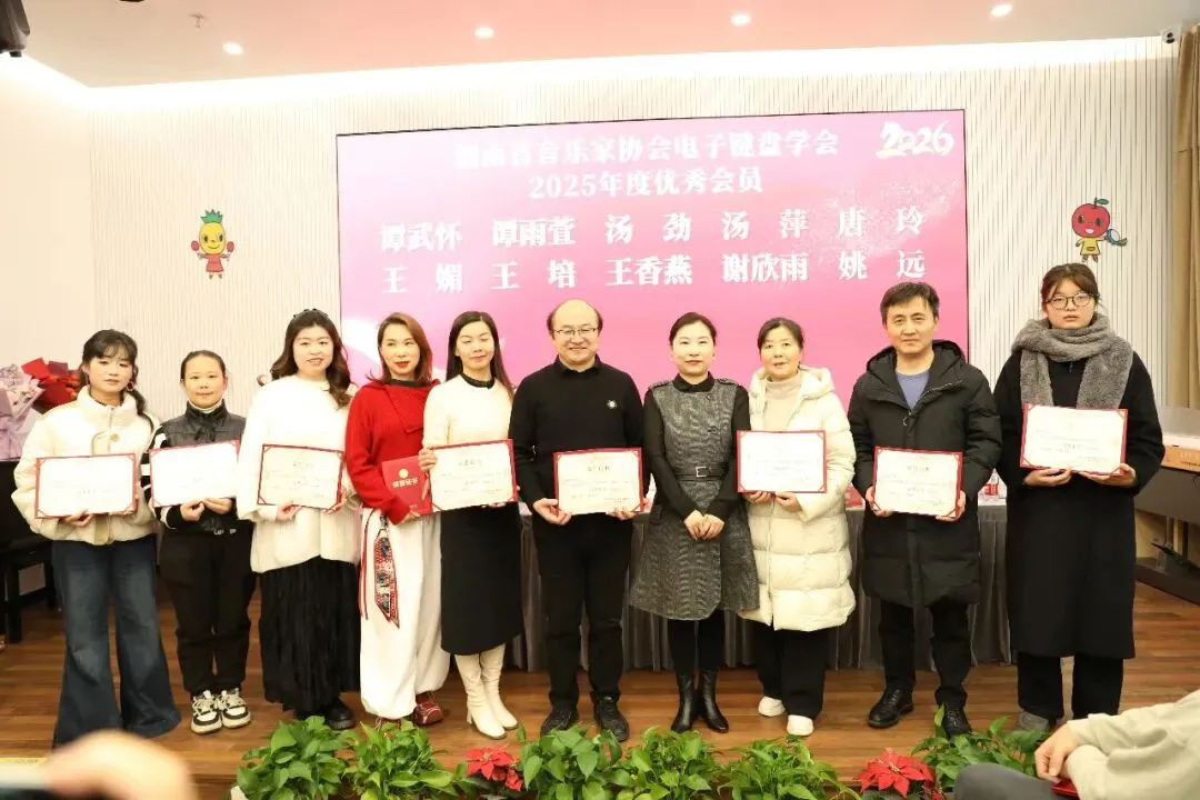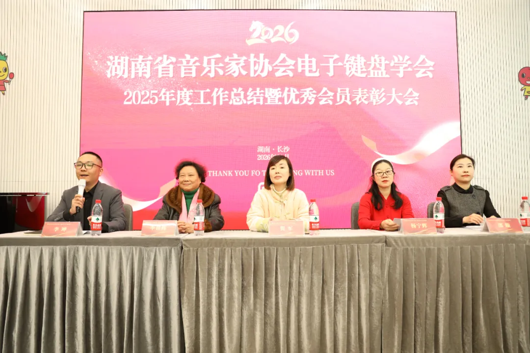 贺军副秘书长首先肯定了学会在杨宁辉会长的带领下,2025年做出的优异成绩,特别是提升学术交流层次、拓宽专业高度;公益普及深入基层、积极发展会员;积极参与艺术实践、服务社会文化等方面成绩斐然。同时,她也对学会今后的工作提了出希望:在新的一年里注重人才培养,继续深化学术交流,加大公益服务力度,加强自身的建设与行业联动,推动湖南电子键盘事业持续发展,为繁荣湖南的音乐事业做出贡献。