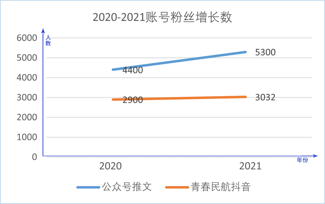 2021年,我部运营的“民航学院”官方微信公众号共分享了252篇推送,共有5300余人关注,累积获得了19万浏览量,推文共被分享了13568次。