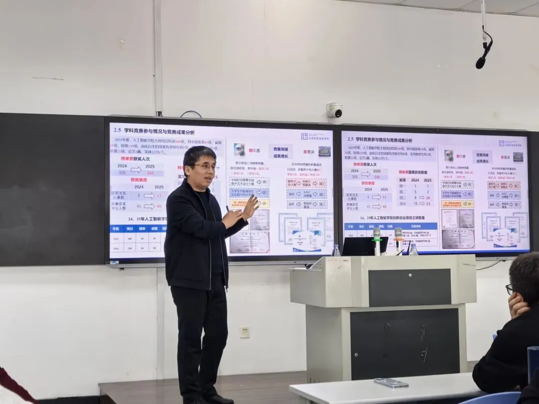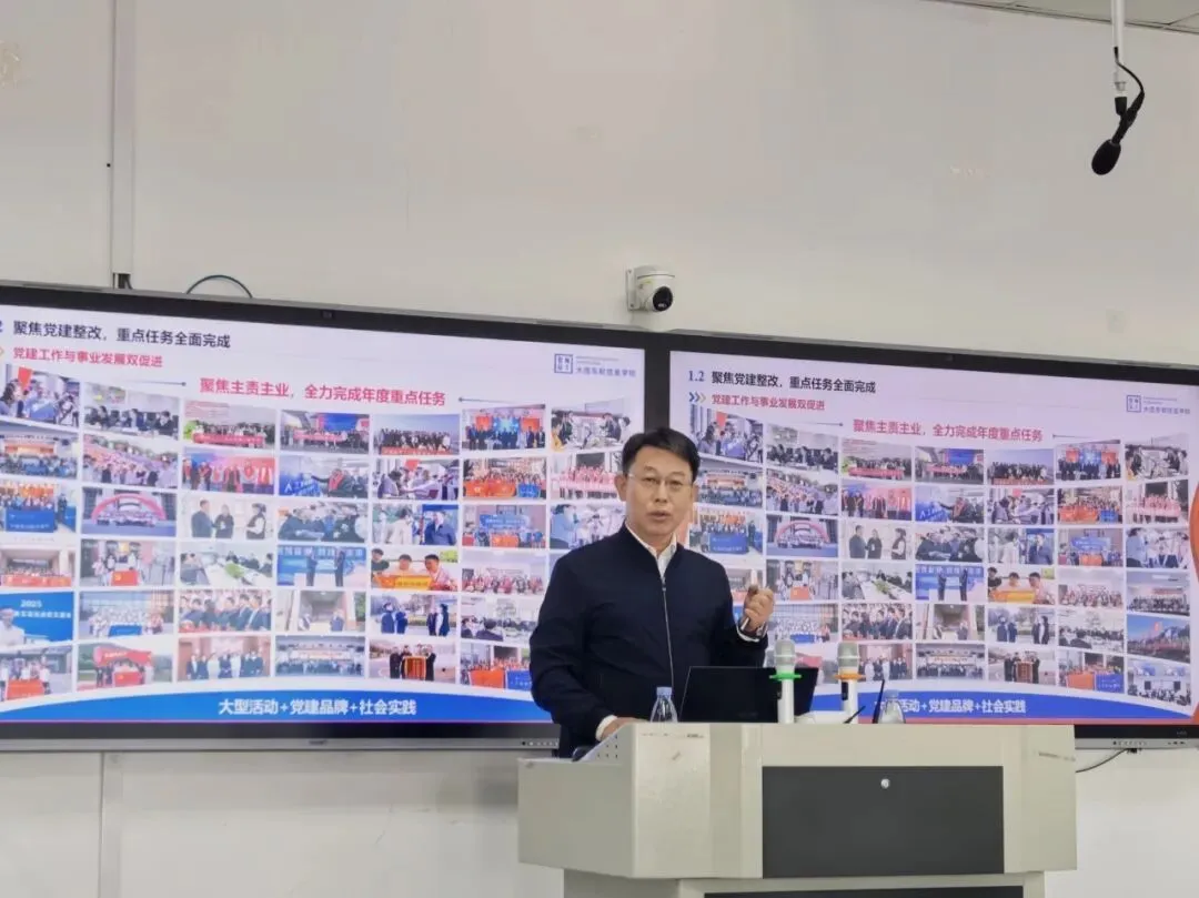 人工智能学院党委书记姜大伟作《2025年党委与学生工作报告》,围绕立德树人根本任务,系统总结了学院在党建、思政、学风、安全稳定等方面的工作成效。姜书记强调,学院将以教育部“立德树人机制综合改革试点”为牵引,深化“党建+”品牌建设,推动党建工作与事业发展深度融合,打造“高水平、有特色、智慧化”的立德树人标杆学院。
