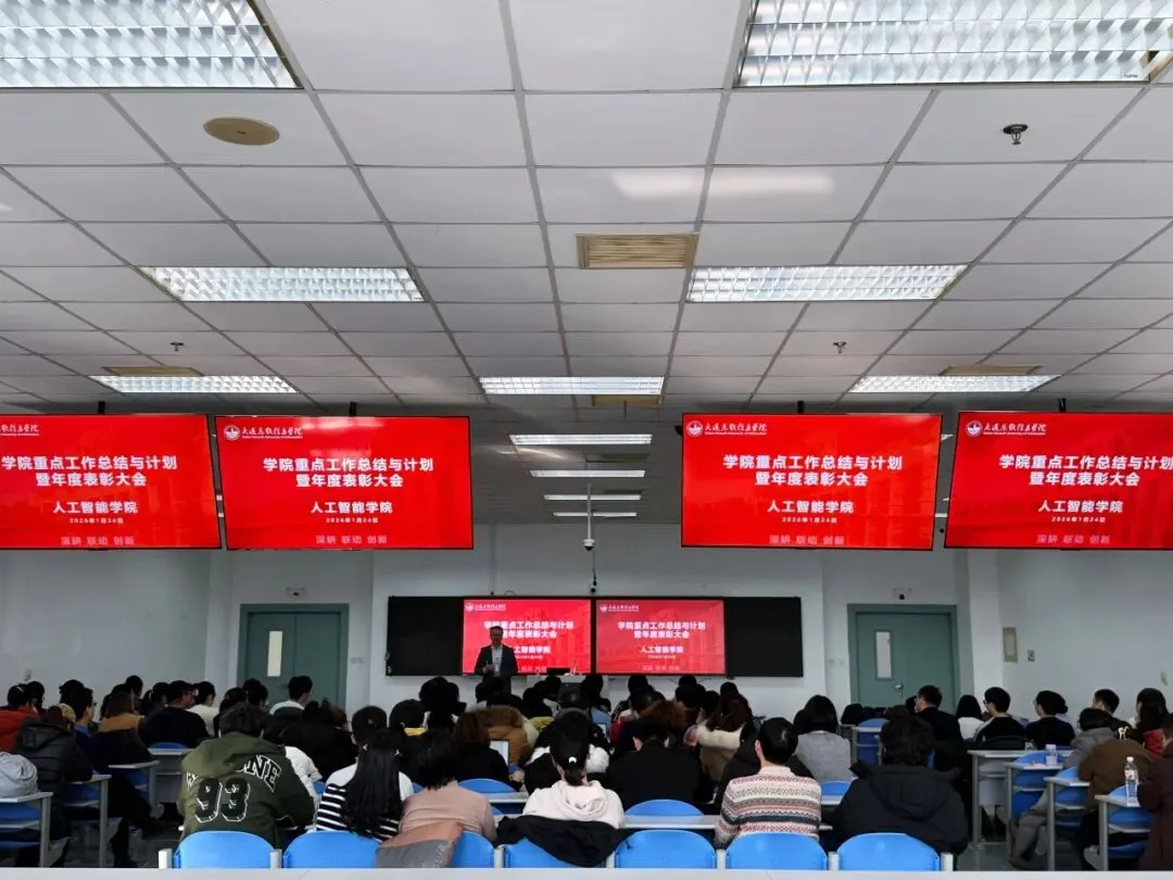 回顾2025年,我们以“赶考”之姿全力攻坚,以“恒进”之态持续拼搏。今天的总结,既是对奋斗历程的真诚致敬,更是面向“十五五”新征程的庄严启航。2026年,让我们紧紧围绕立德树人根本任务,贯通“招生培养就业”育人全链条,构建人工智能赋能教育教学新生态,以更高的标准深化内涵建设,以更强的担当推动高质量发展。让我们凝心聚力、深耕不辍,将今天的共识转化为行动,将过往的荣誉沉淀为动力,在人工智能教育的沃土上持续开拓、锐意进取,共同谱写学院与学校协同发展的新篇章!