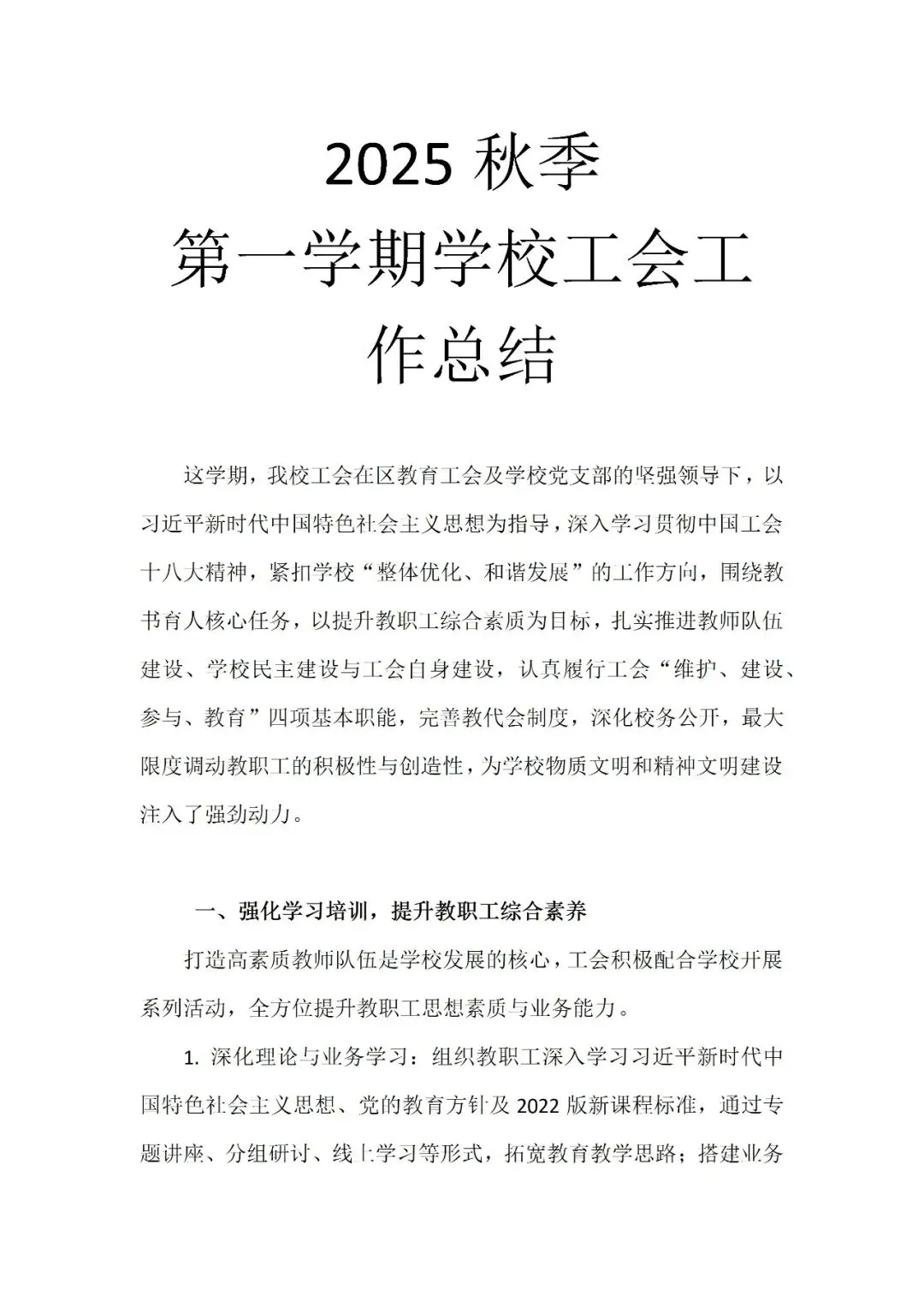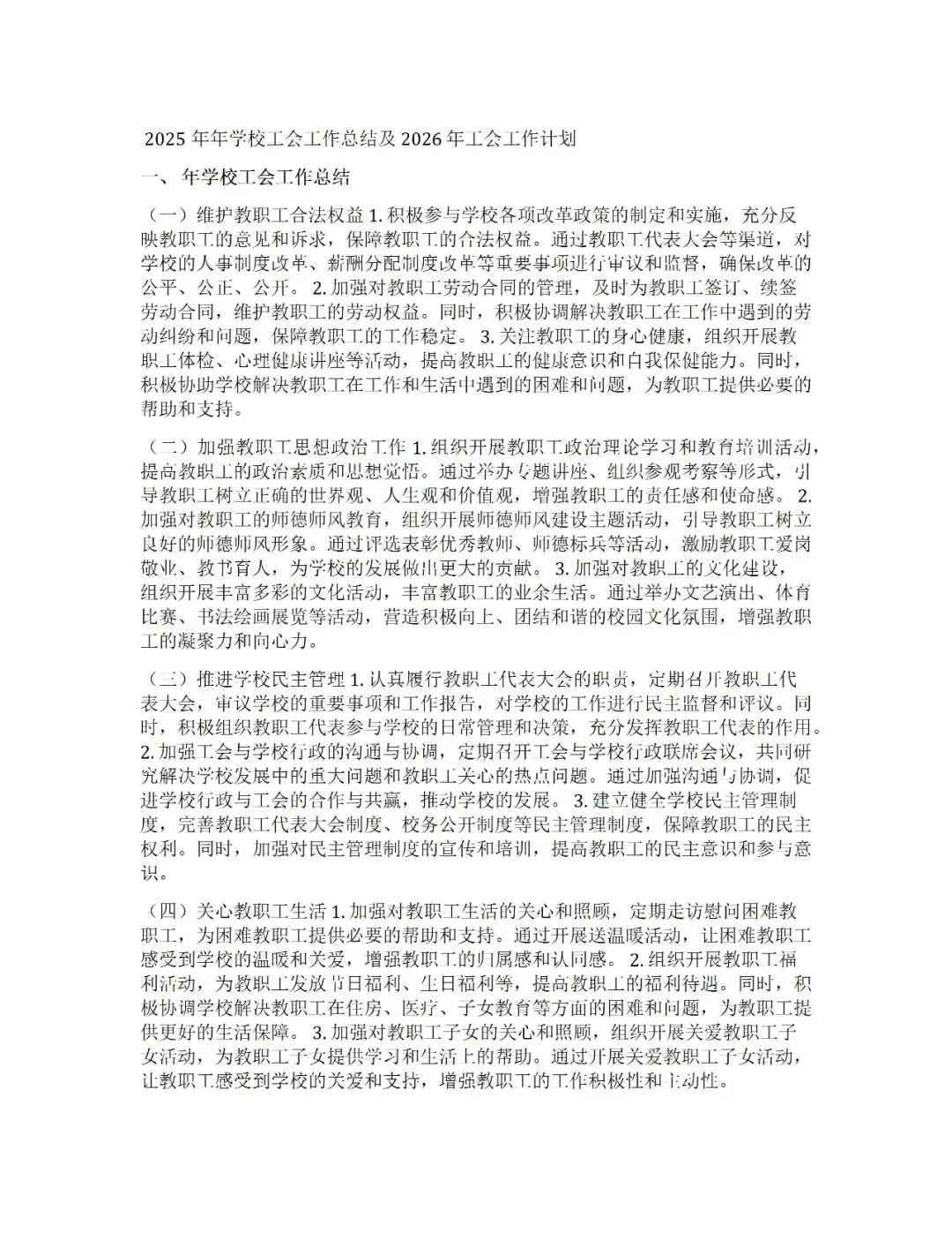 >2025年学校工会工作总结及2026年工会工作计划(word版)