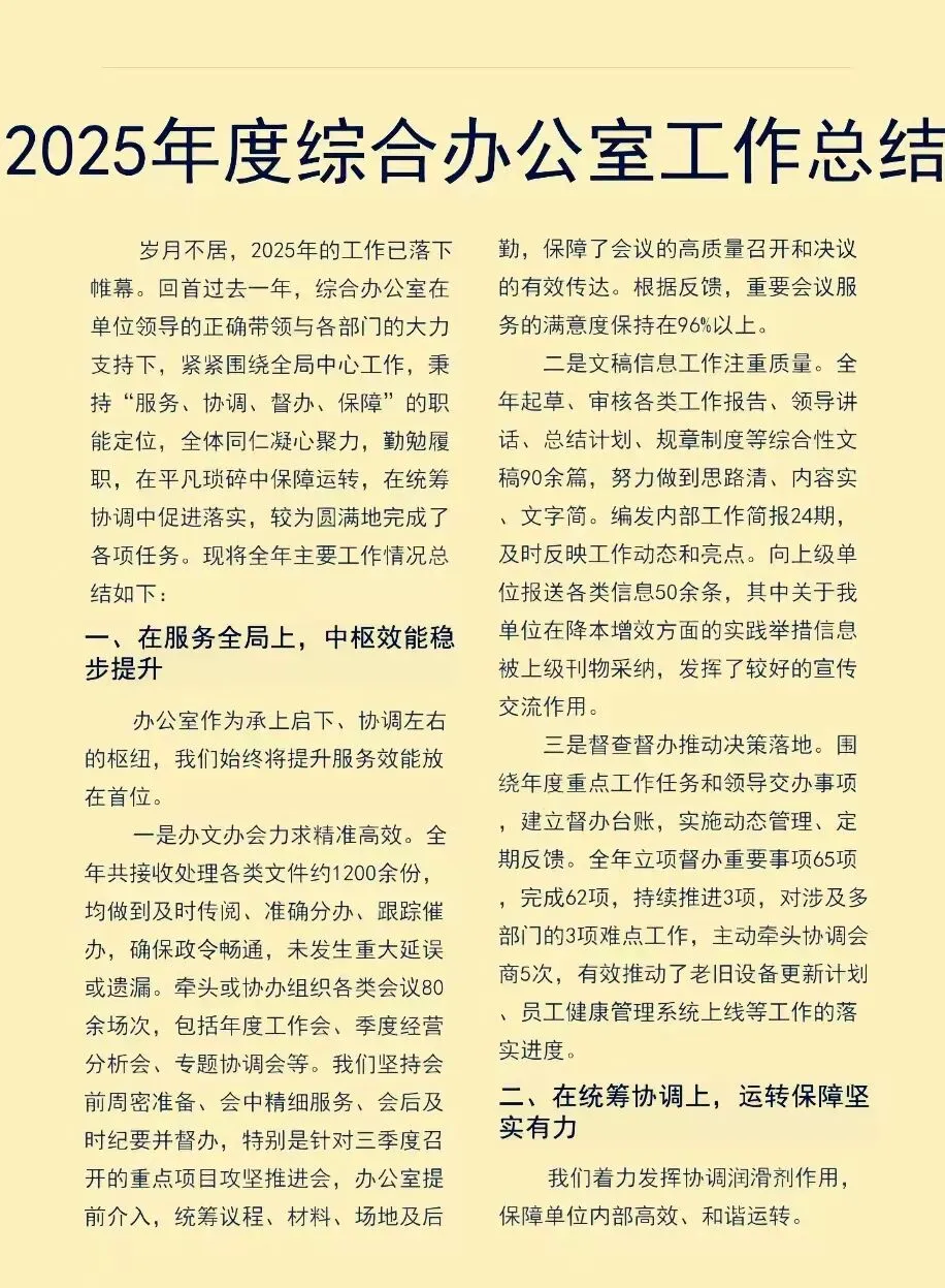 >2025年度综合办公室工作总结