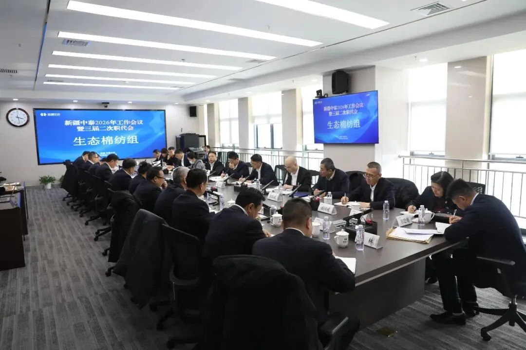 1月23日下午,出席新疆中泰2026年工作会议暨三届二次职代会的生态棉纺组代表们,围绕《2026年集团公司工作会议讲话》和《2025年度经营工作报告》展开热烈讨论。代表们结合板块实际各抒己见、凝聚共识、共促发展。新疆中泰党委书记、董事长王平洋参与讨论并讲话,党委委员、副总经理肖军主持会议。