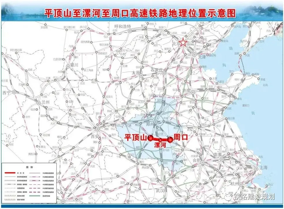 平漯周高铁(平顶山 - 漯河 - 周口高速铁路)西起平顶山西站,东至周口东站,正线全长约199.7公里,设计时速350公里,全线设6座车站,计划2027年底建成通车 。