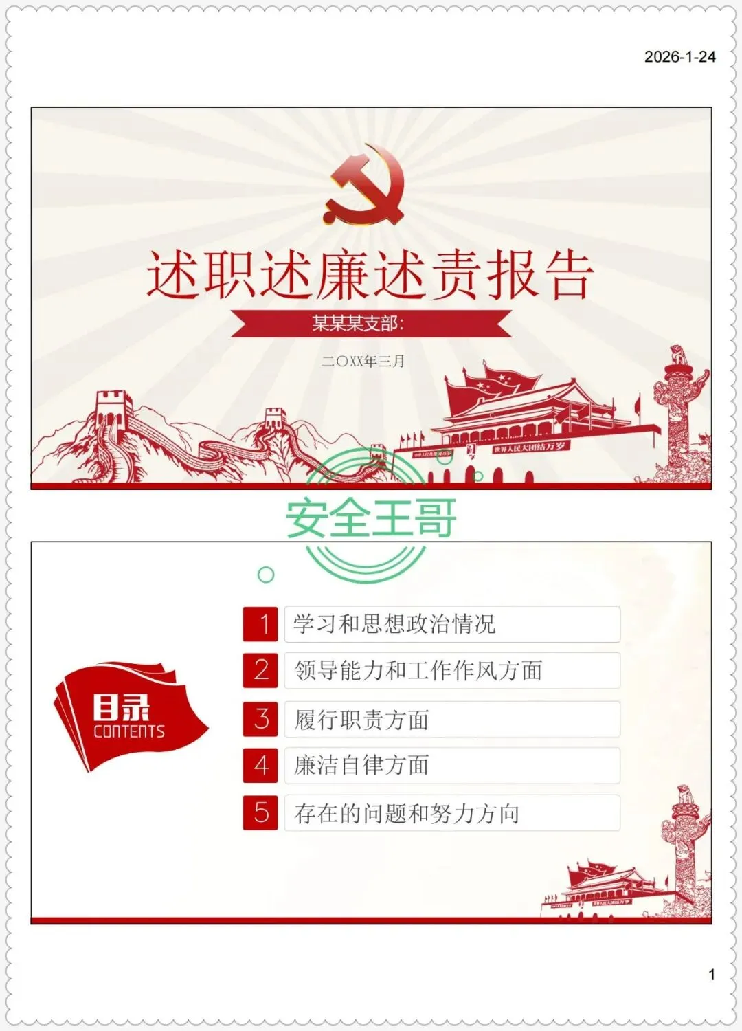 >2025年终安全生产工作思路汇报 +年度述职述廉述责报告PPT模板(35页)