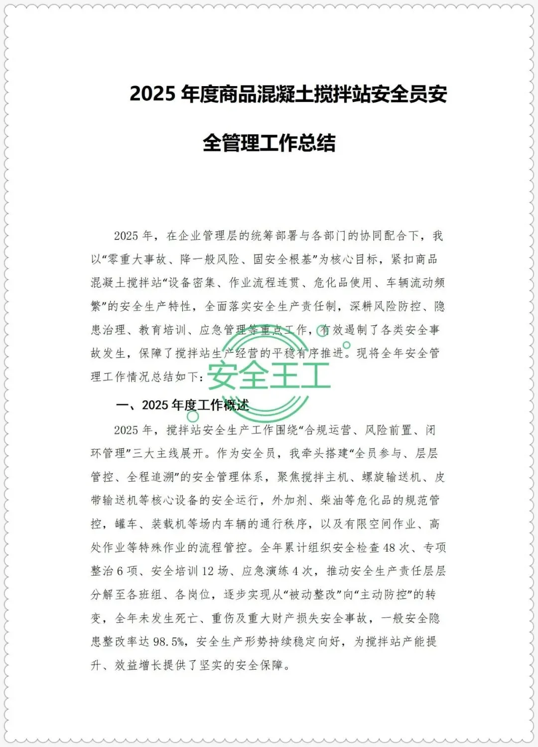 2025年度商品混凝土搅拌站安全员安全管理工作总结